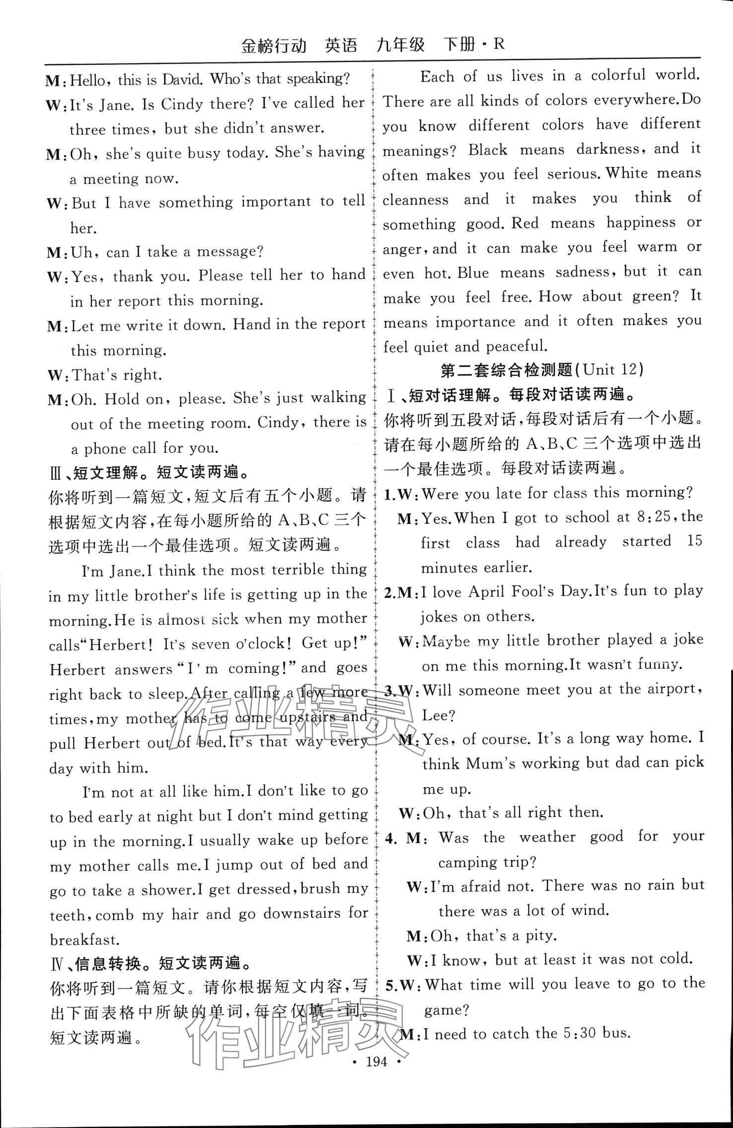 注:目前有些书本章节名称可能整理的还不是很完善,但都是按照顺序排列的,请同学们按照顺序仔细查找。练习册 2024年金榜行动九年级英语下册人教版 答案主要是用来给同学们做完题方便对答案用的,请勿直接抄袭。