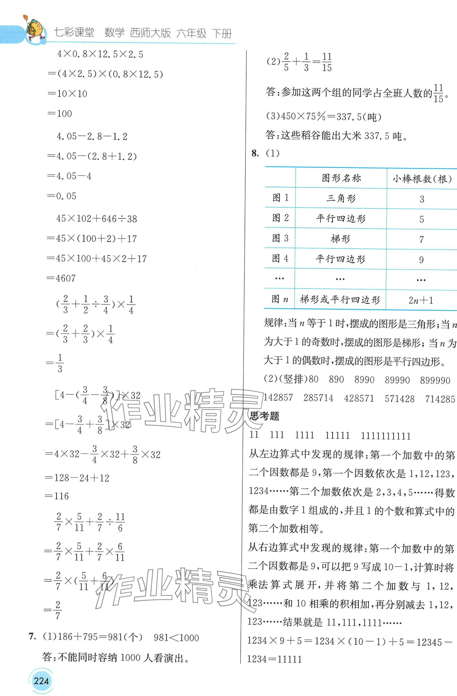 注:目前有些书本章节名称可能整理的还不是很完善,但都是按照顺序排列的,请同学们按照顺序仔细查找。练习册 2024年七彩课堂六年级数学下册西师大版 答案主要是用来给同学们做完题方便对答案用的,请勿直接抄袭。