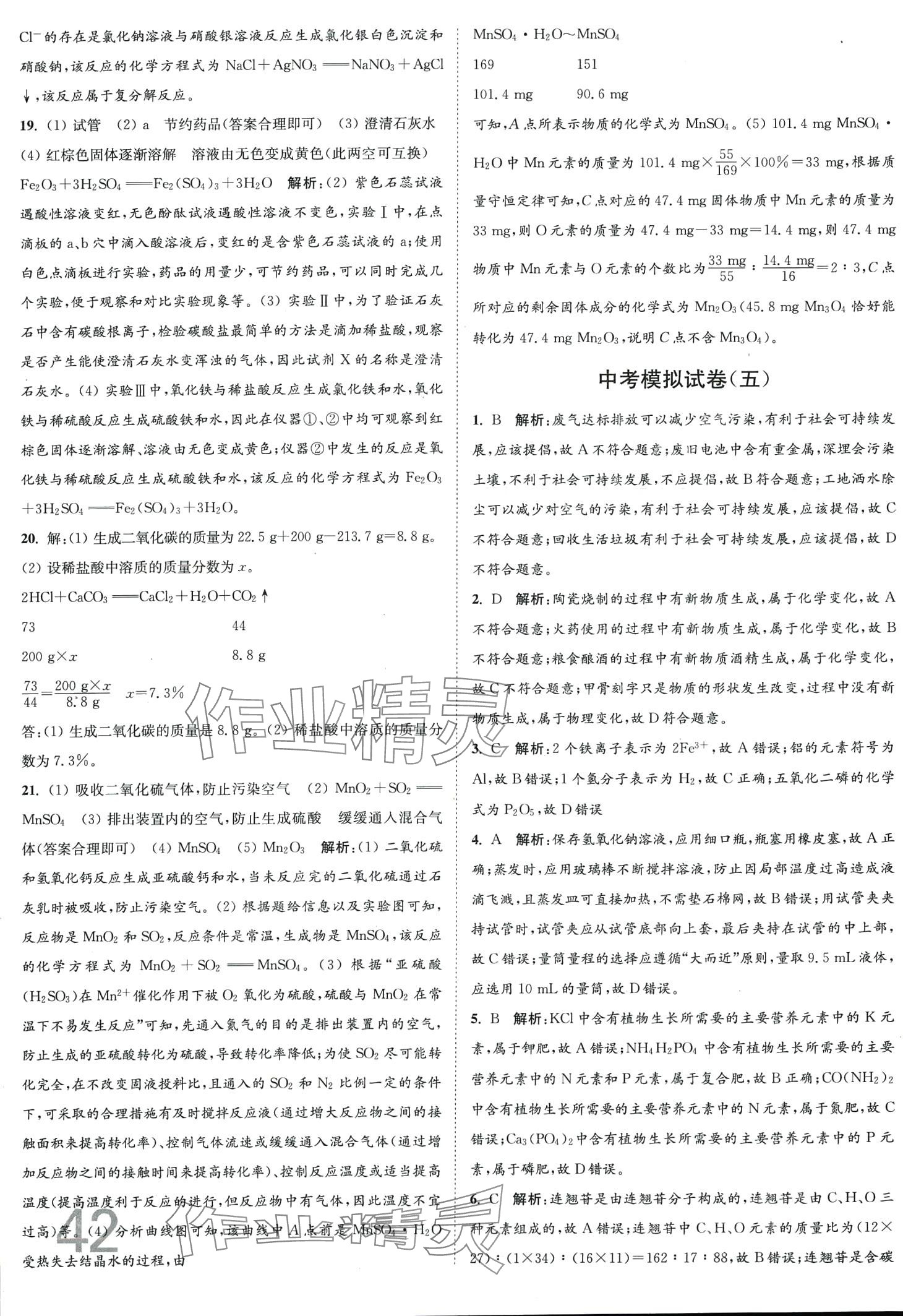 注:目前有些书本章节名称可能整理的还不是很完善,但都是按照顺序排列的,请同学们按照顺序仔细查找。练习册 2024年江苏密卷九年级化学下册沪教版 答案主要是用来给同学们做完题方便对答案用的,请勿直接抄袭。