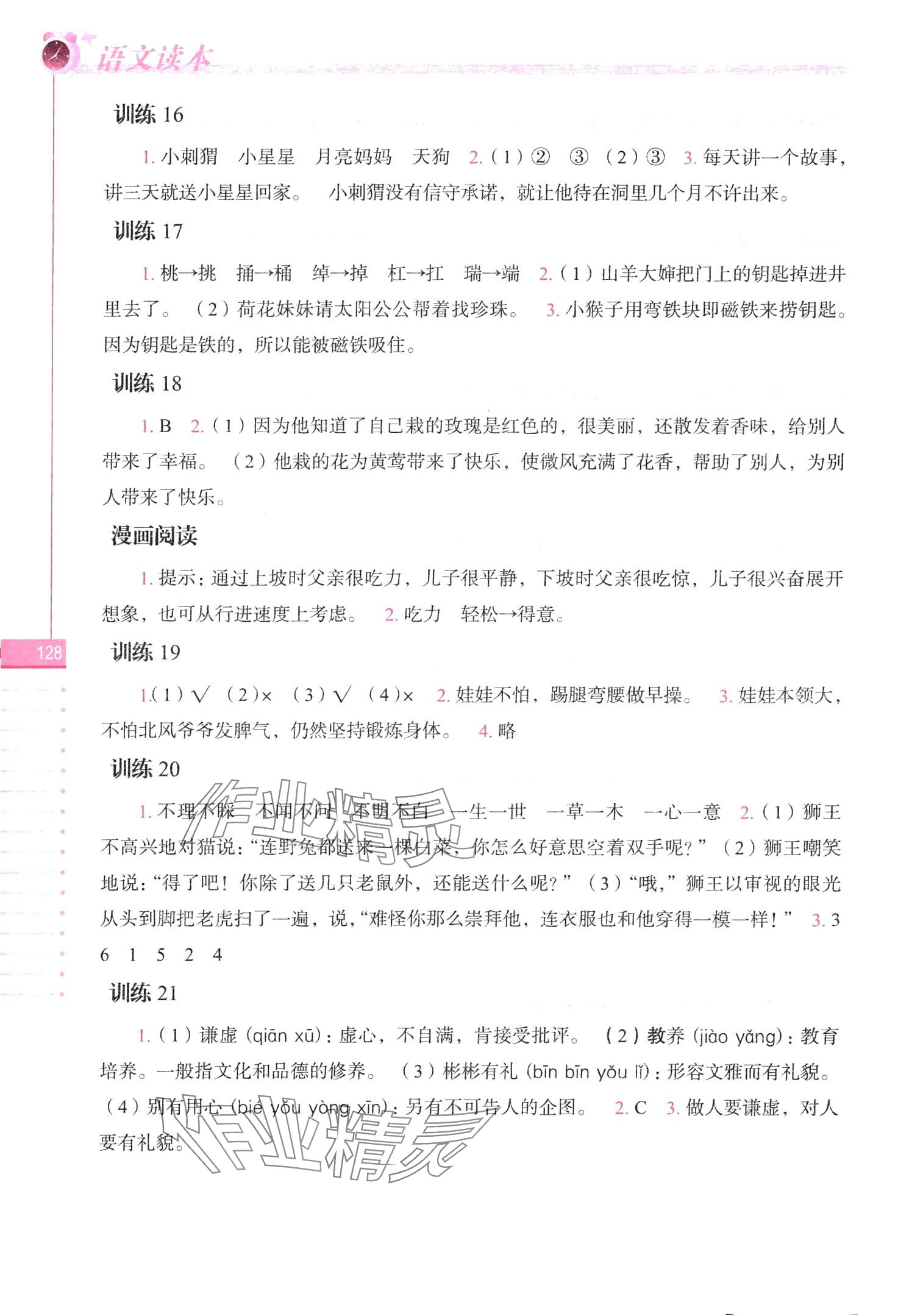 注:目前有些书本章节名称可能整理的还不是很完善,但都是按照顺序排列的,请同学们按照顺序仔细查找。练习册 2024年语文读本长春出版社二年级下册人教版 答案主要是用来给同学们做完题方便对答案用的,请勿直接抄袭。