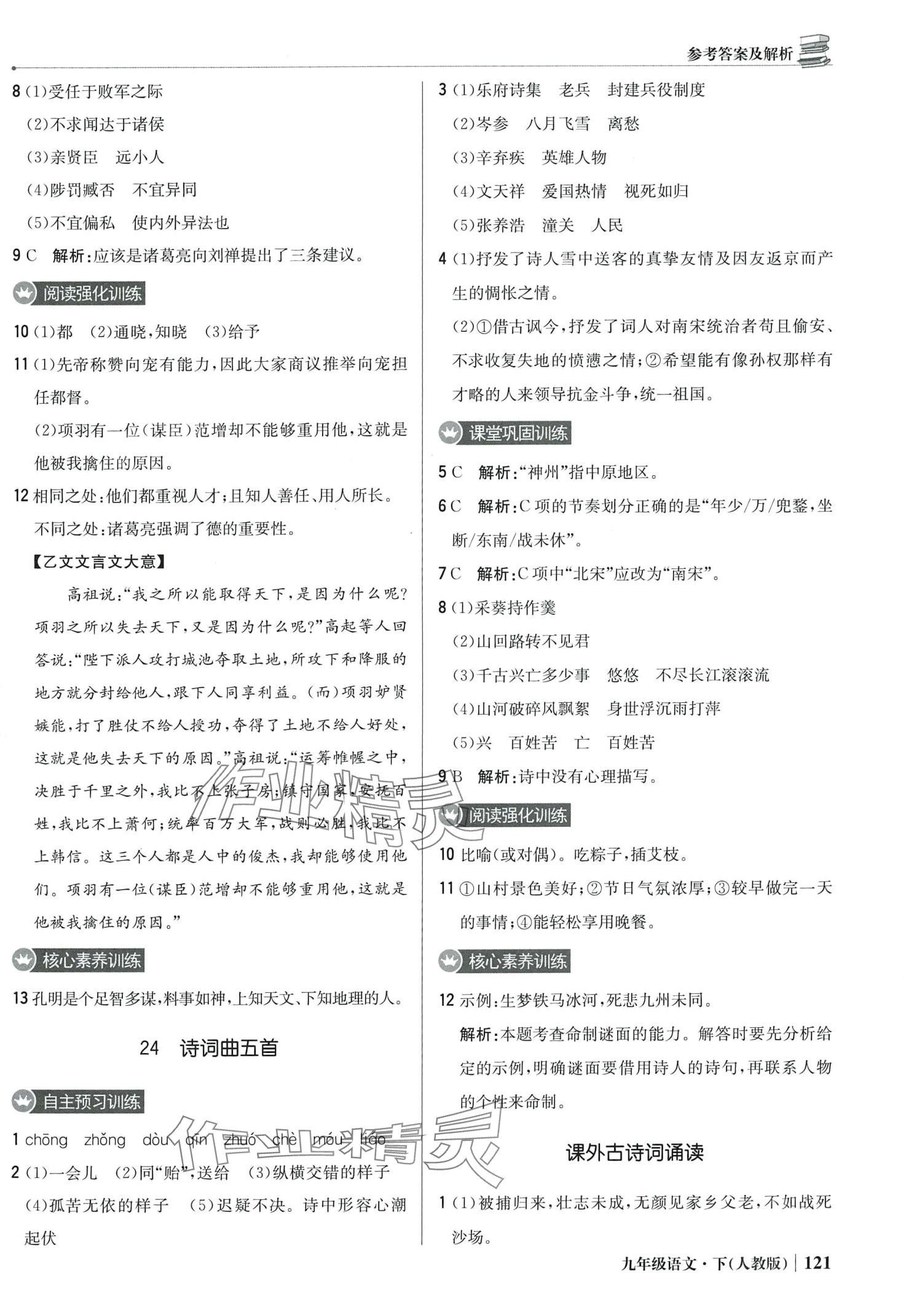 注:目前有些书本章节名称可能整理的还不是很完善,但都是按照顺序排列的,请同学们按照顺序仔细查找。练习册 2024年1加1轻巧夺冠优化训练九年级语文下册人教版 答案主要是用来给同学们做完题方便对答案用的,请勿直接抄袭。