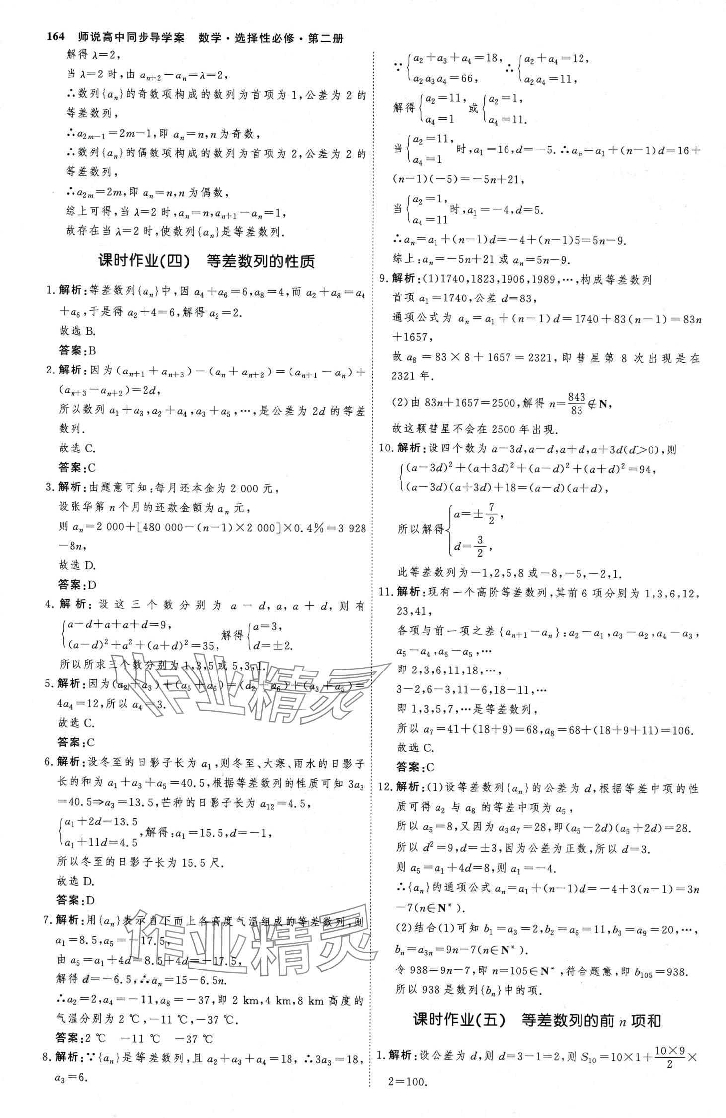 注:目前有些书本章节名称可能整理的还不是很完善,但都是按照顺序排列的,请同学们按照顺序仔细查找。练习册 2024年师说高中数学选择性必修第二册通用版 答案主要是用来给同学们做完题方便对答案用的,请勿直接抄袭。