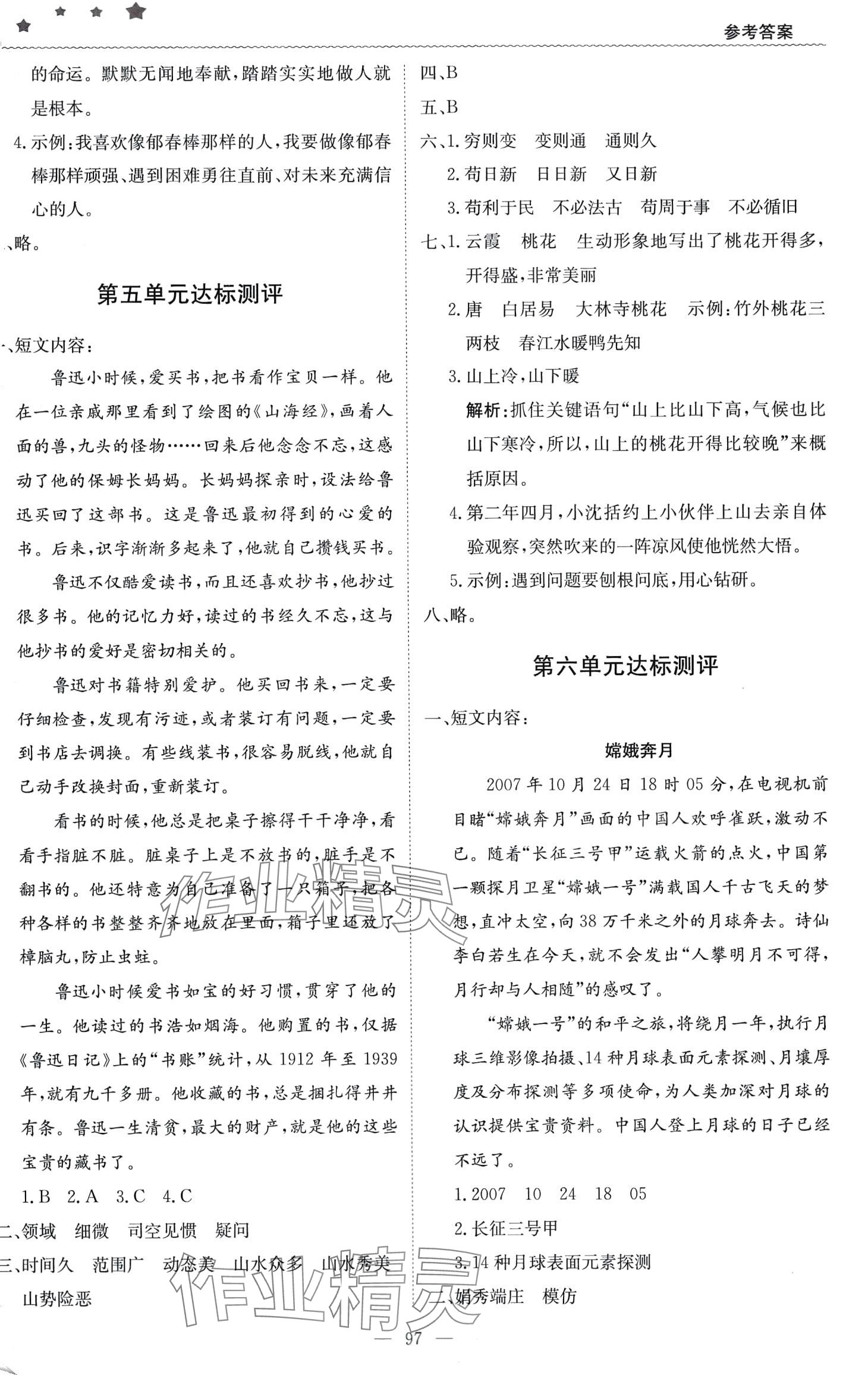 注:目前有些书本章节名称可能整理的还不是很完善,但都是按照顺序排列的,请同学们按照顺序仔细查找。练习册 2024年1加1轻巧夺冠优化训练六年级语文下册人教版 答案主要是用来给同学们做完题方便对答案用的,请勿直接抄袭。