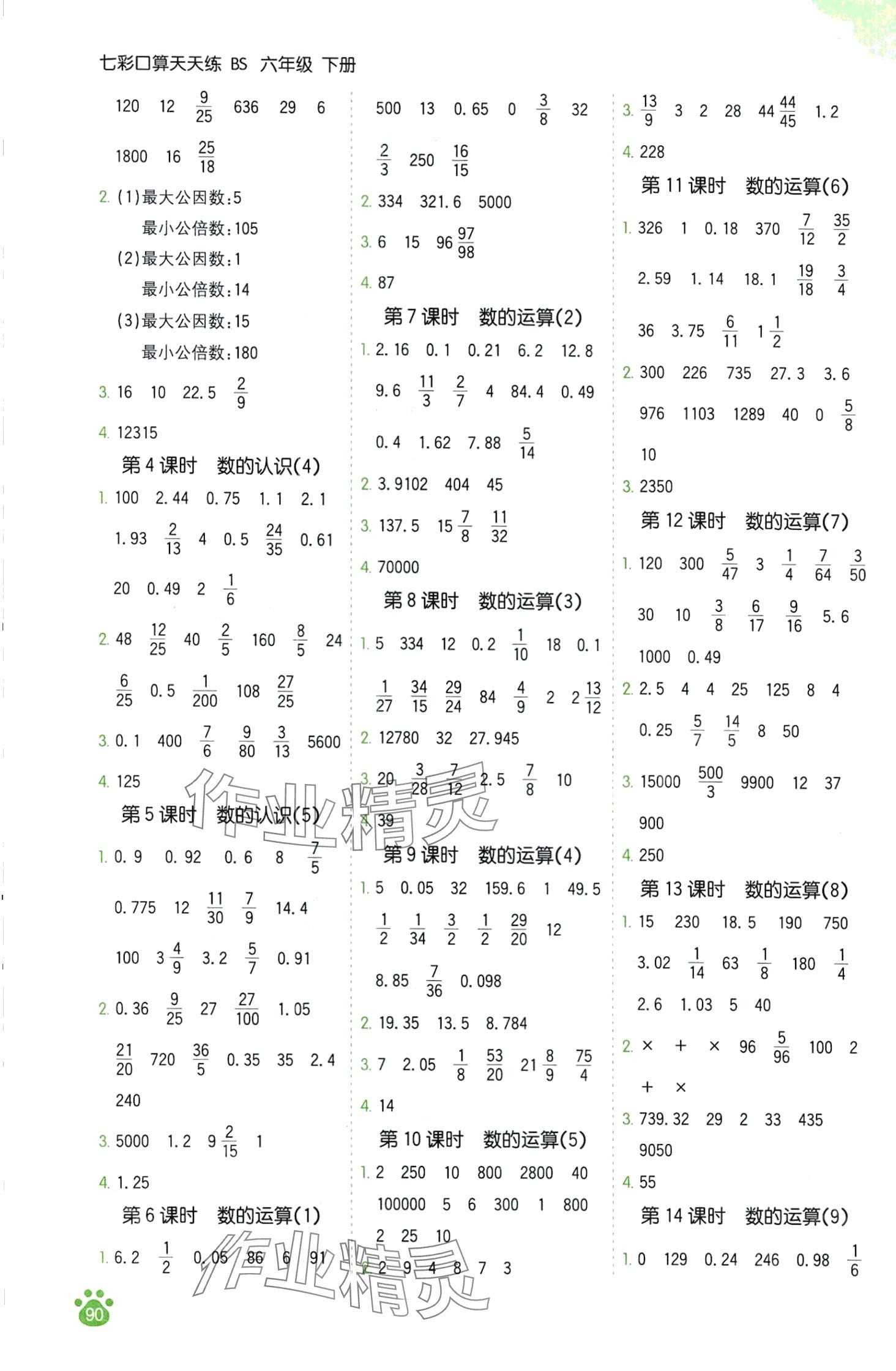 注:目前有些书本章节名称可能整理的还不是很完善,但都是按照顺序排列的,请同学们按照顺序仔细查找。练习册 2024年七彩口算天天练六年级数学下册北师大版 答案主要是用来给同学们做完题方便对答案用的,请勿直接抄袭。