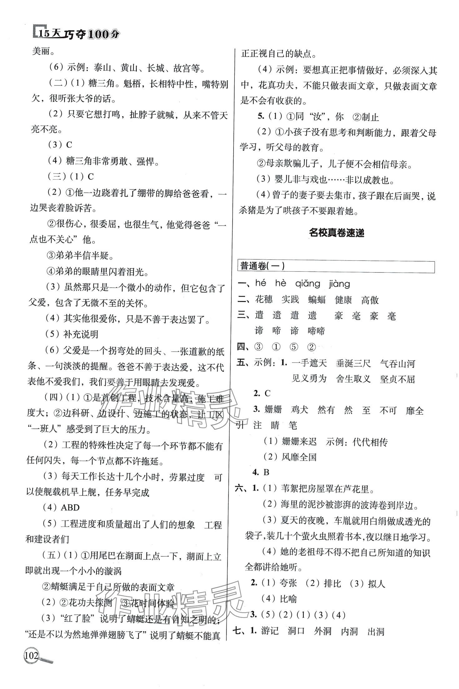 注:目前有些书本章节名称可能整理的还不是很完善,但都是按照顺序排列的,请同学们按照顺序仔细查找。练习册 2024年15天巧夺100分四年级语文下册人教版 答案主要是用来给同学们做完题方便对答案用的,请勿直接抄袭。