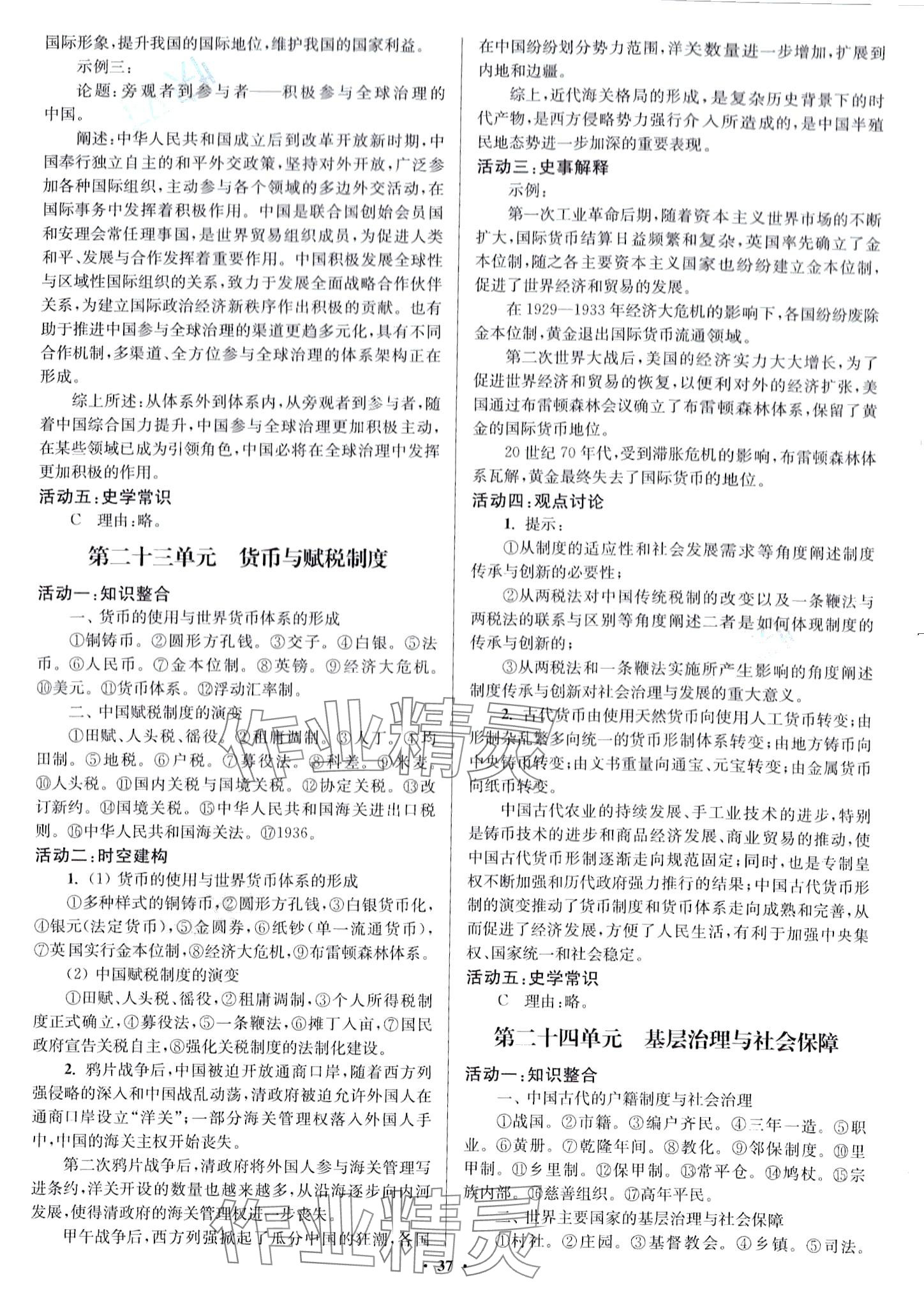 注:目前有些书本章节名称可能整理的还不是很完善,但都是按照顺序排列的,请同学们按照顺序仔细查找。练习册 2024年活动单导学课程一轮总复习高中历史 答案主要是用来给同学们做完题方便对答案用的,请勿直接抄袭。
