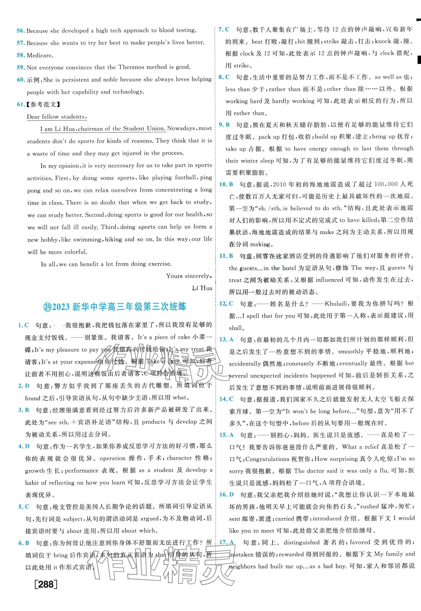 注:目前有些书本章节名称可能整理的还不是很完善,但都是按照顺序排列的,请同学们按照顺序仔细查找。练习册 2024年高考模拟试题汇编九年级英语通用版 答案主要是用来给同学们做完题方便对答案用的,请勿直接抄袭。
