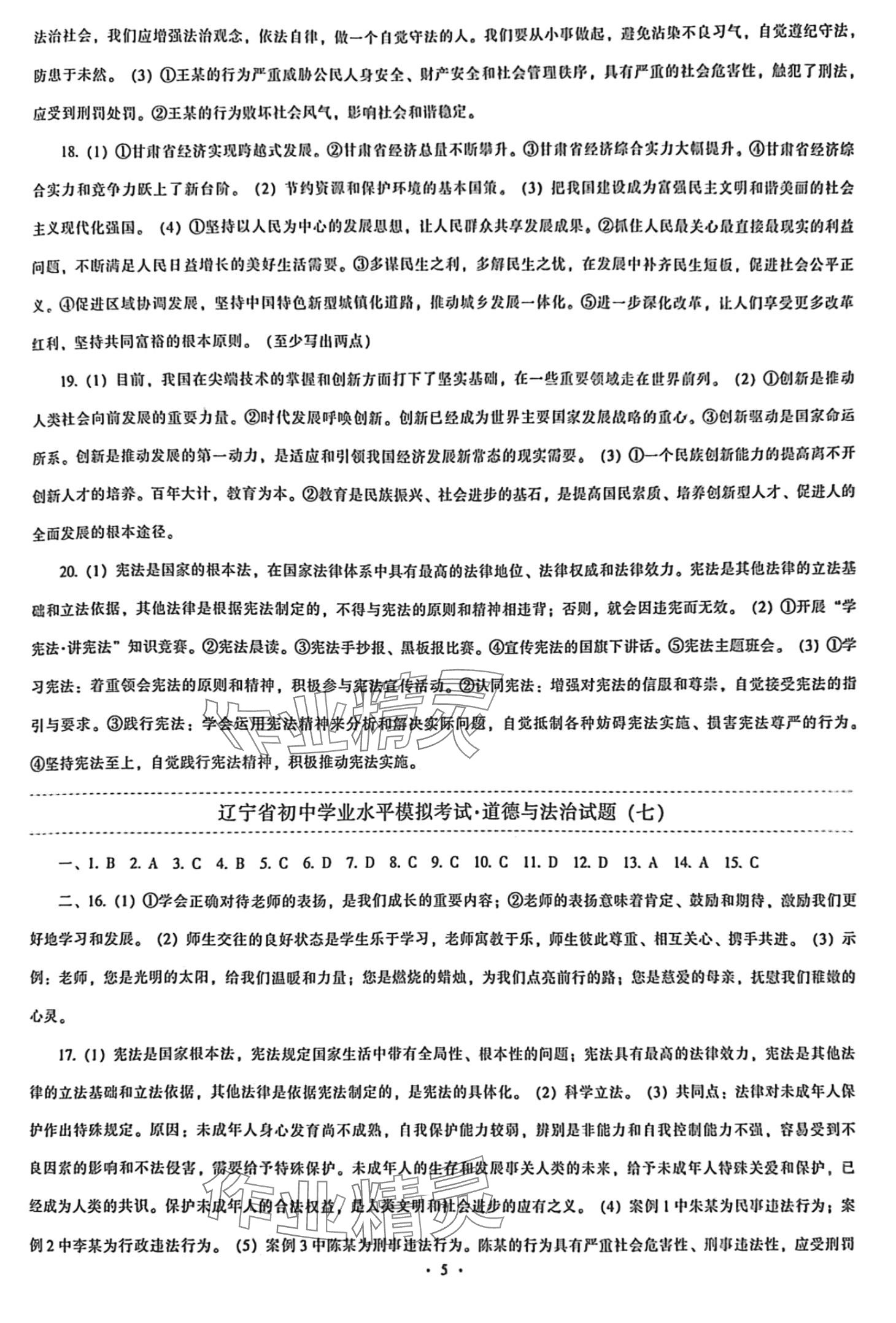注:目前有些书本章节名称可能整理的还不是很完善,但都是按照顺序排列的,请同学们按照顺序仔细查找。练习册 2024年中考最后一套卷道德与法治中考辽宁专版 答案主要是用来给同学们做完题方便对答案用的,请勿直接抄袭。