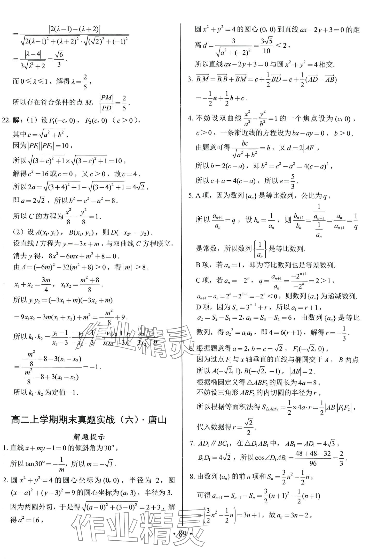 注:目前有些书本章节名称可能整理的还不是很完善,但都是按照顺序排列的,请同学们按照顺序仔细查找。练习册 2024年期末实战高二数学上册人教A版 答案主要是用来给同学们做完题方便对答案用的,请勿直接抄袭。