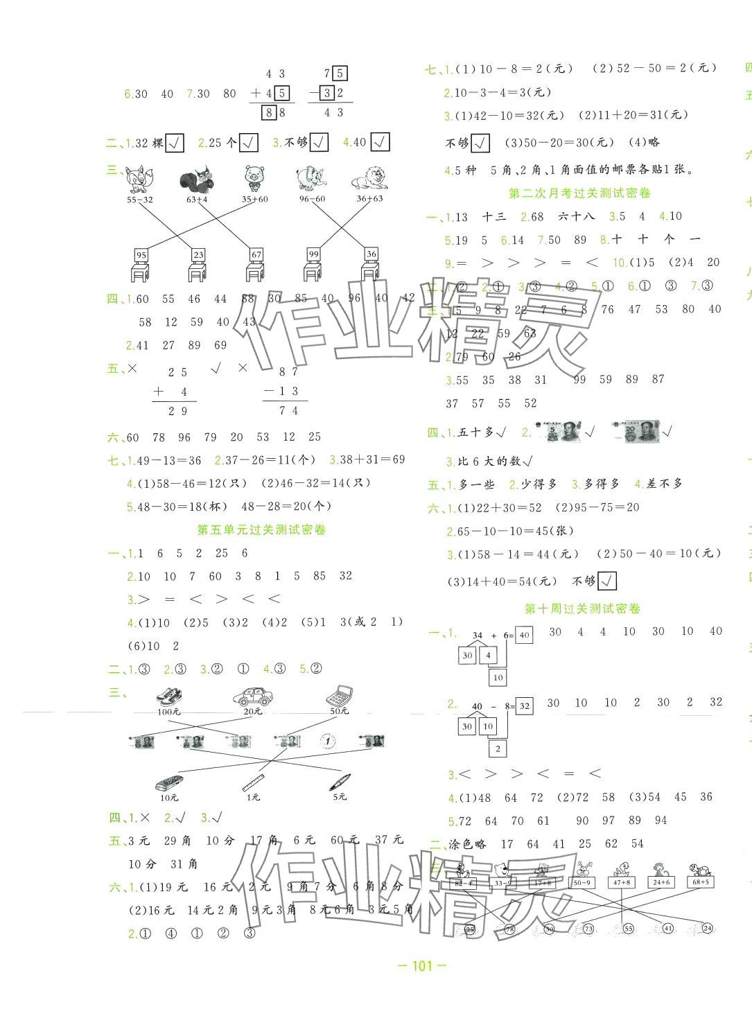注:目前有些书本章节名称可能整理的还不是很完善,但都是按照顺序排列的,请同学们按照顺序仔细查找。练习册 2024年金卷王名校大试卷一年级数学下册苏教版 答案主要是用来给同学们做完题方便对答案用的,请勿直接抄袭。
