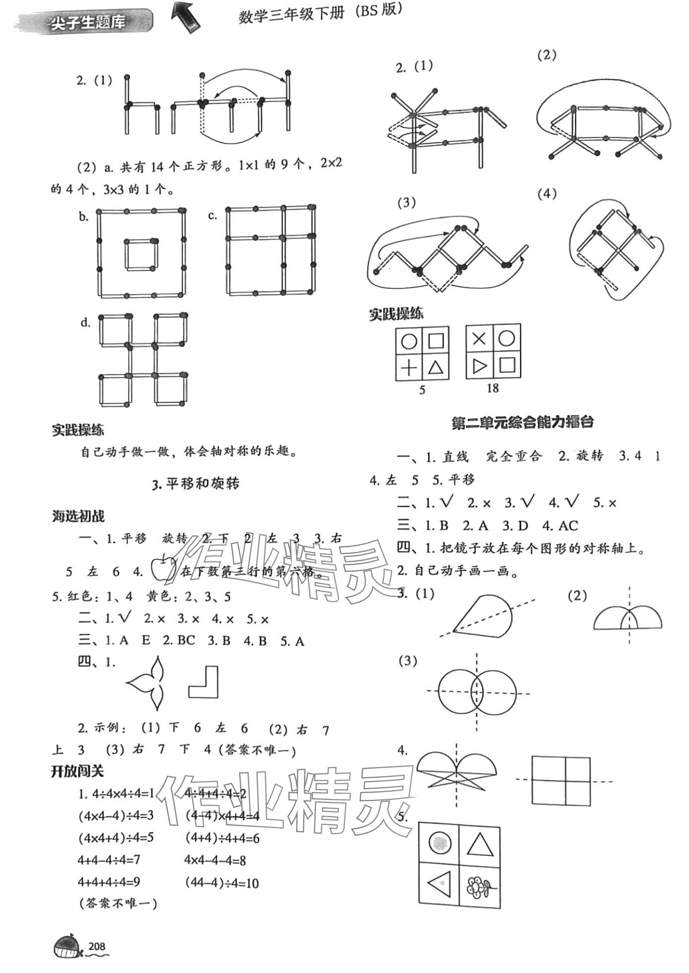 注:目前有些书本章节名称可能整理的还不是很完善,但都是按照顺序排列的,请同学们按照顺序仔细查找。练习册 2024年尖子生题库三年级数学下册北师大版 答案主要是用来给同学们做完题方便对答案用的,请勿直接抄袭。