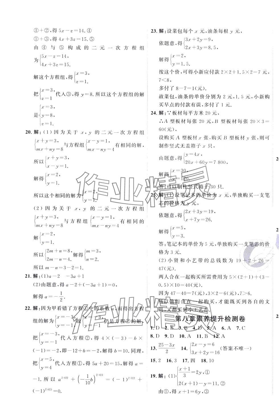注:目前有些书本章节名称可能整理的还不是很完善,但都是按照顺序排列的,请同学们按照顺序仔细查找。练习册 2024年优加密卷七年级数学下册人教版P版 答案主要是用来给同学们做完题方便对答案用的,请勿直接抄袭。