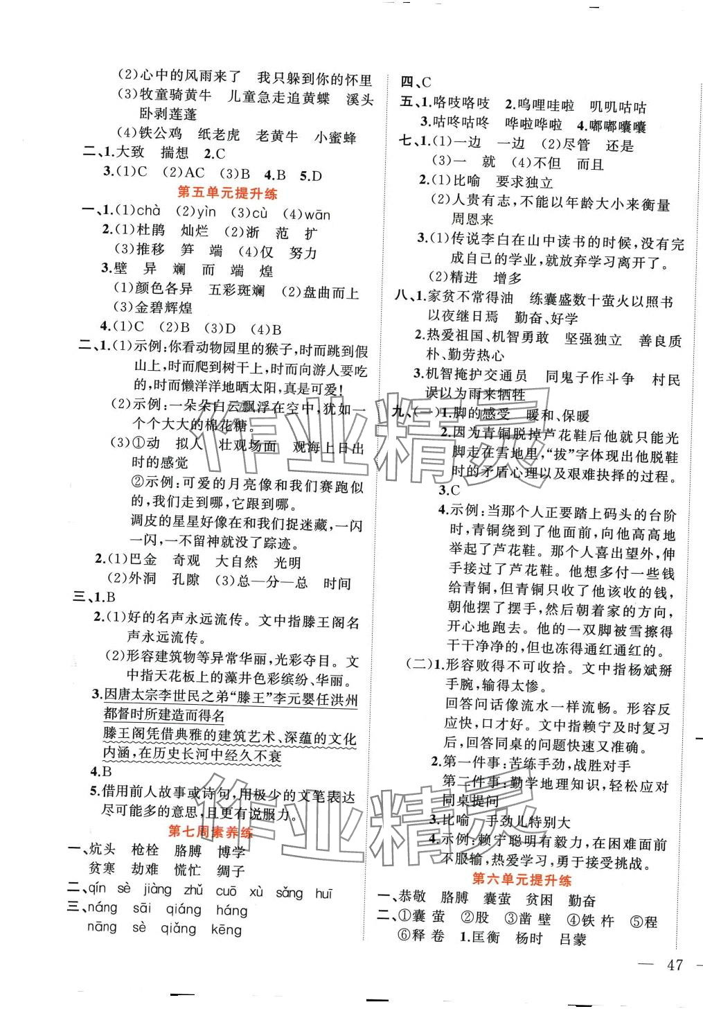 注:目前有些书本章节名称可能整理的还不是很完善,但都是按照顺序排列的,请同学们按照顺序仔细查找。练习册 2024年黄金周卷四年级语文下册人教版 答案主要是用来给同学们做完题方便对答案用的,请勿直接抄袭。