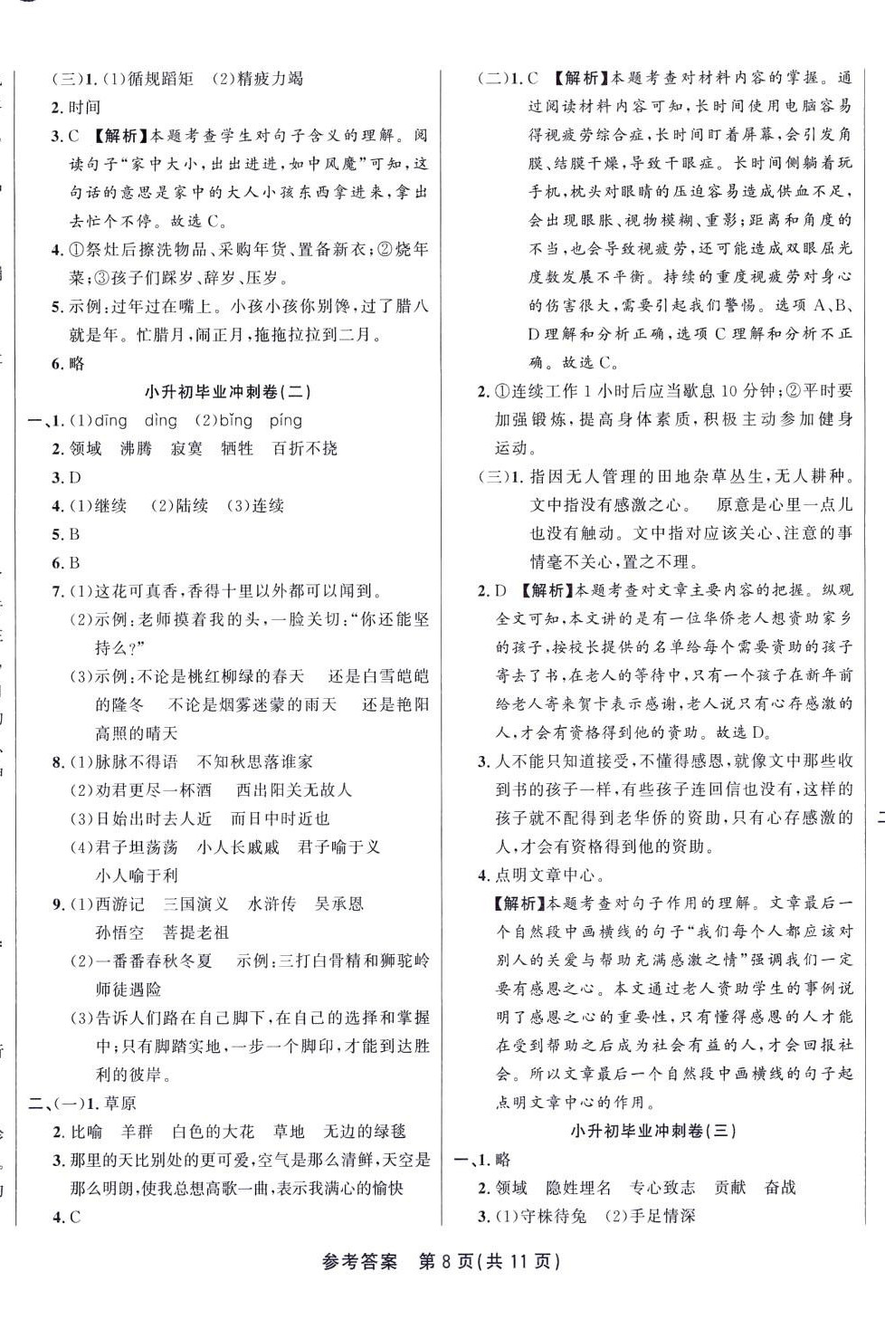注:目前有些书本章节名称可能整理的还不是很完善,但都是按照顺序排列的,请同学们按照顺序仔细查找。练习册 2024年升华名卷六年级语文人教版 答案主要是用来给同学们做完题方便对答案用的,请勿直接抄袭。