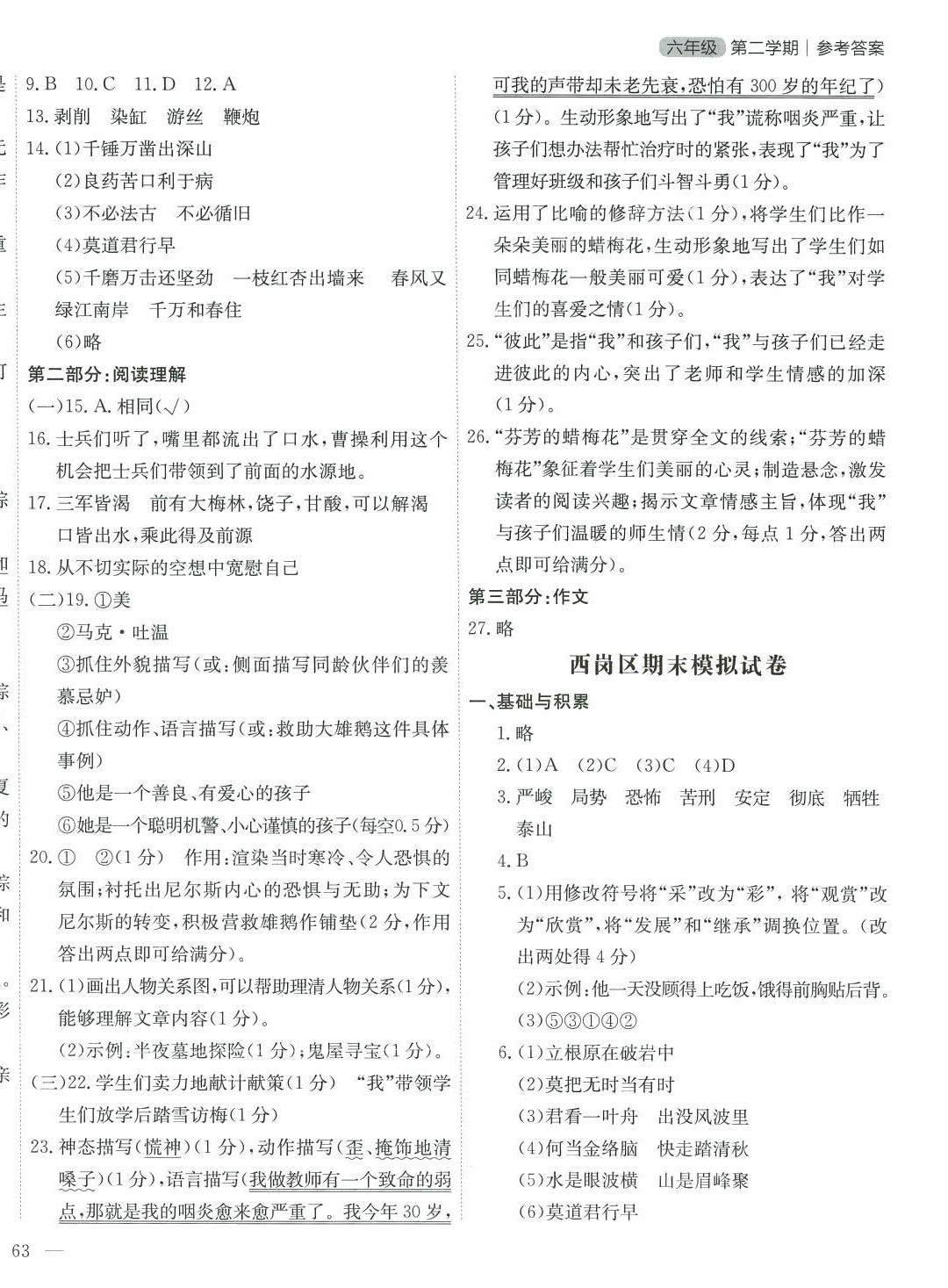 注:目前有些书本章节名称可能整理的还不是很完善,但都是按照顺序排列的,请同学们按照顺序仔细查找。练习册 2024年大连金牌期末模拟试卷六年级语文下册人教版 答案主要是用来给同学们做完题方便对答案用的,请勿直接抄袭。