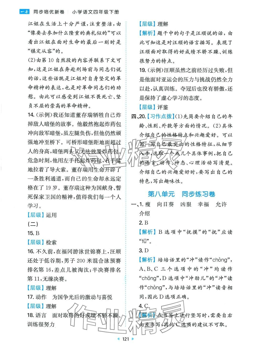 注:目前有些书本章节名称可能整理的还不是很完善,但都是按照顺序排列的,请同学们按照顺序仔细查找。练习册 2024年一本同步培优新卷四年级语文下册人教版 答案主要是用来给同学们做完题方便对答案用的,请勿直接抄袭。