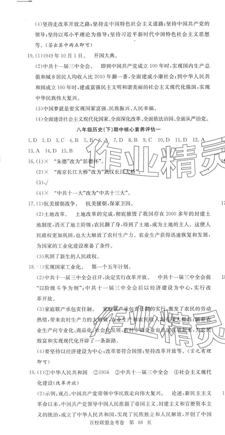 《2024年百校联盟金考卷八年级历史下册人教版》