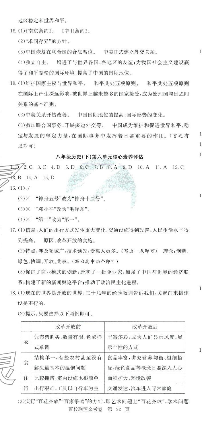注:目前有些书本章节名称可能整理的还不是很完善,但都是按照顺序排列的,请同学们按照顺序仔细查找。练习册 2024年百校联盟金考卷八年级历史下册人教版 答案主要是用来给同学们做完题方便对答案用的,请勿直接抄袭。