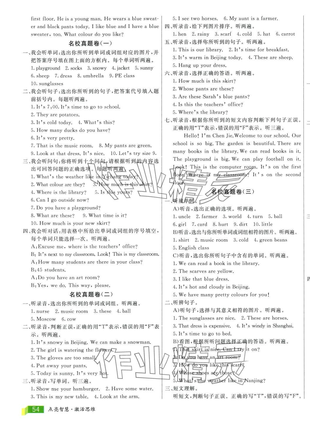 注:目前有些书本章节名称可能整理的还不是很完善,但都是按照顺序排列的,请同学们按照顺序仔细查找。练习册 2024年亮点激活提优大试卷四年级英语下册 答案主要是用来给同学们做完题方便对答案用的,请勿直接抄袭。