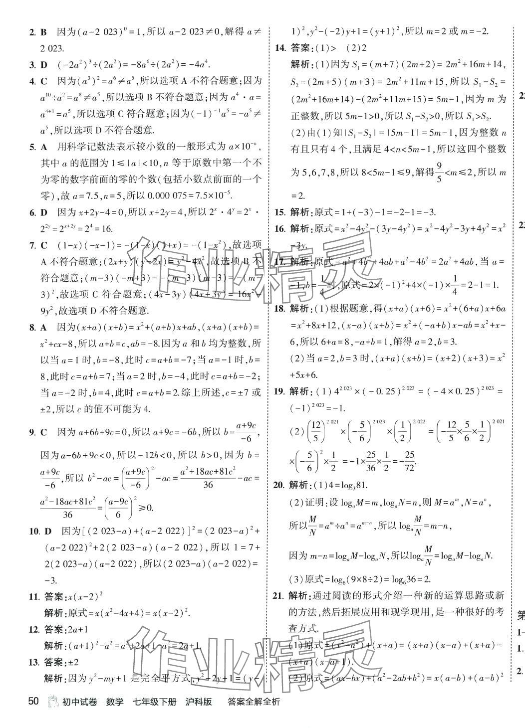 注:目前有些书本章节名称可能整理的还不是很完善,但都是按照顺序排列的,请同学们按照顺序仔细查找。练习册 2024年5年中考3年模拟初中试卷七年级数学下册沪科版 答案主要是用来给同学们做完题方便对答案用的,请勿直接抄袭。