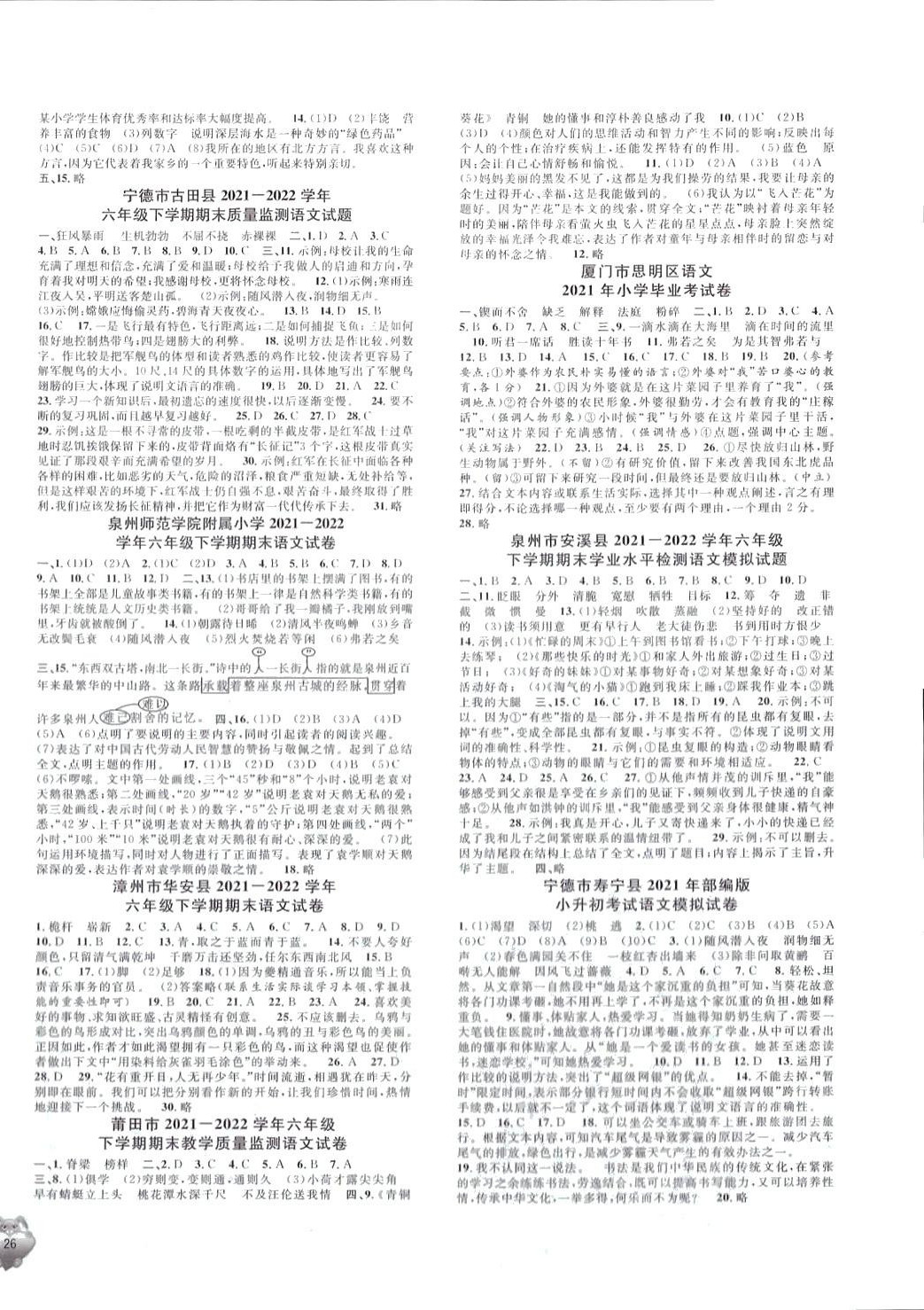 注:目前有些书本章节名称可能整理的还不是很完善,但都是按照顺序排列的,请同学们按照顺序仔细查找。练习册 2024年标准期末考卷六年级语文福建专版 答案主要是用来给同学们做完题方便对答案用的,请勿直接抄袭。