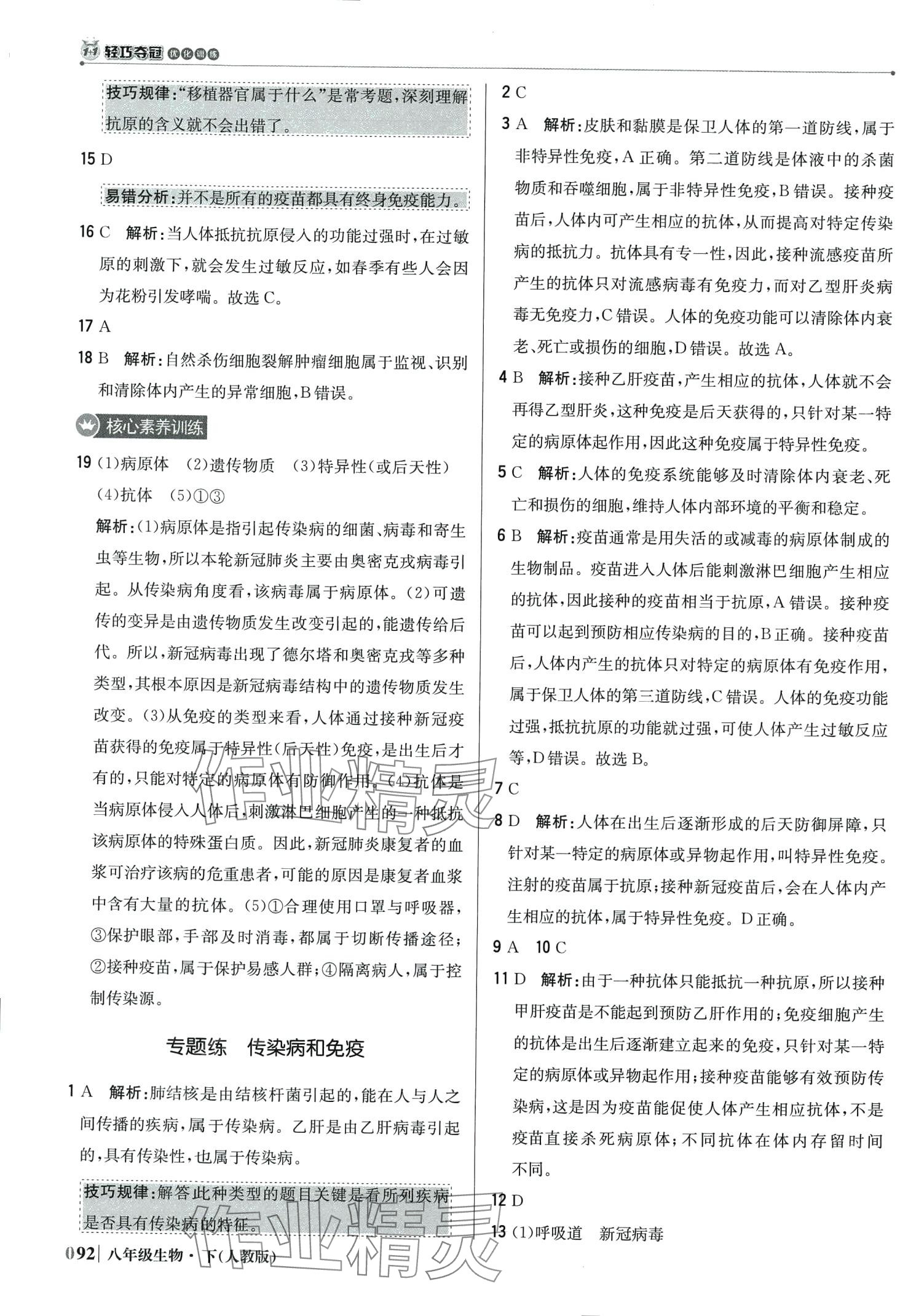 注:目前有些书本章节名称可能整理的还不是很完善,但都是按照顺序排列的,请同学们按照顺序仔细查找。练习册 2024年1加1轻巧夺冠优化训练八年级生物下册人教版 答案主要是用来给同学们做完题方便对答案用的,请勿直接抄袭。