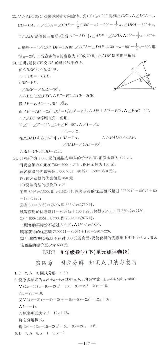 注:目前有些书本章节名称可能整理的还不是很完善,但都是按照顺序排列的,请同学们按照顺序仔细查找。练习册 2024年精彩考评单元测评卷八年级数学下册北师大B版升级版 答案主要是用来给同学们做完题方便对答案用的,请勿直接抄袭。
