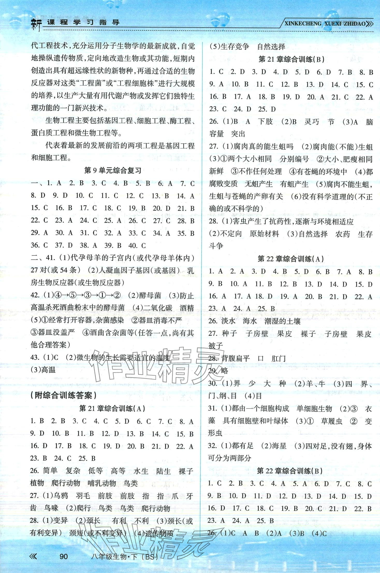 注:目前有些书本章节名称可能整理的还不是很完善,但都是按照顺序排列的,请同学们按照顺序仔细查找。练习册 2024年新课程学习指导南方出版社八年级生物下册北师大版 答案主要是用来给同学们做完题方便对答案用的,请勿直接抄袭。