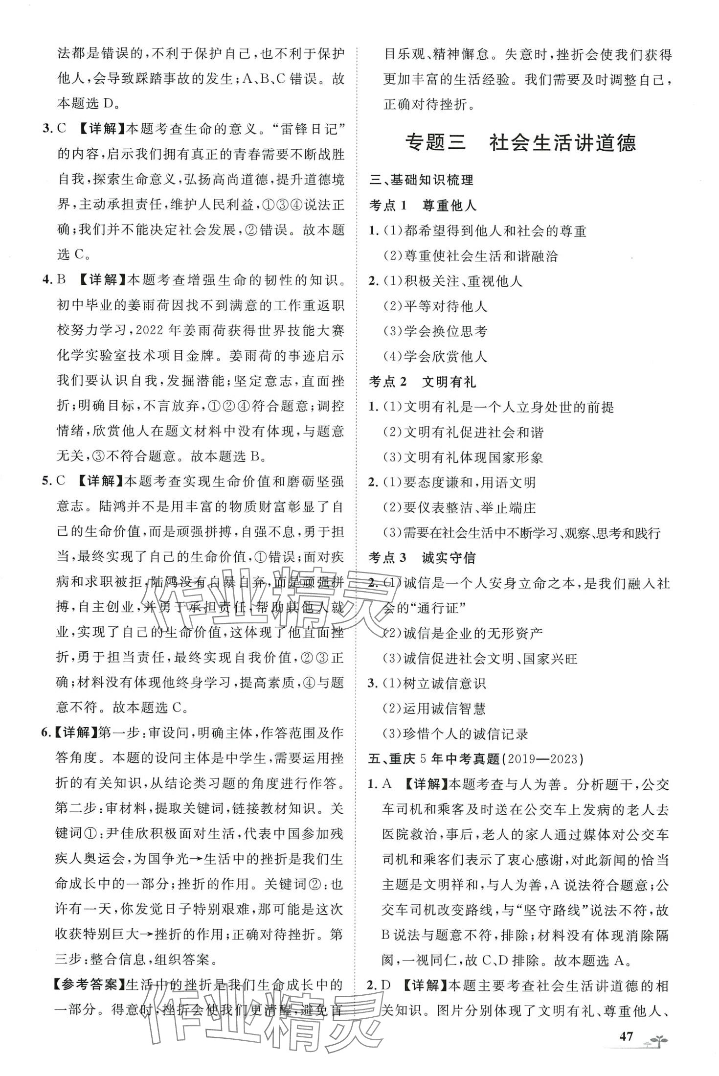 注:目前有些书本章节名称可能整理的还不是很完善,但都是按照顺序排列的,请同学们按照顺序仔细查找。练习册 2024年直面新中考道德与法治重庆专版 答案主要是用来给同学们做完题方便对答案用的,请勿直接抄袭。