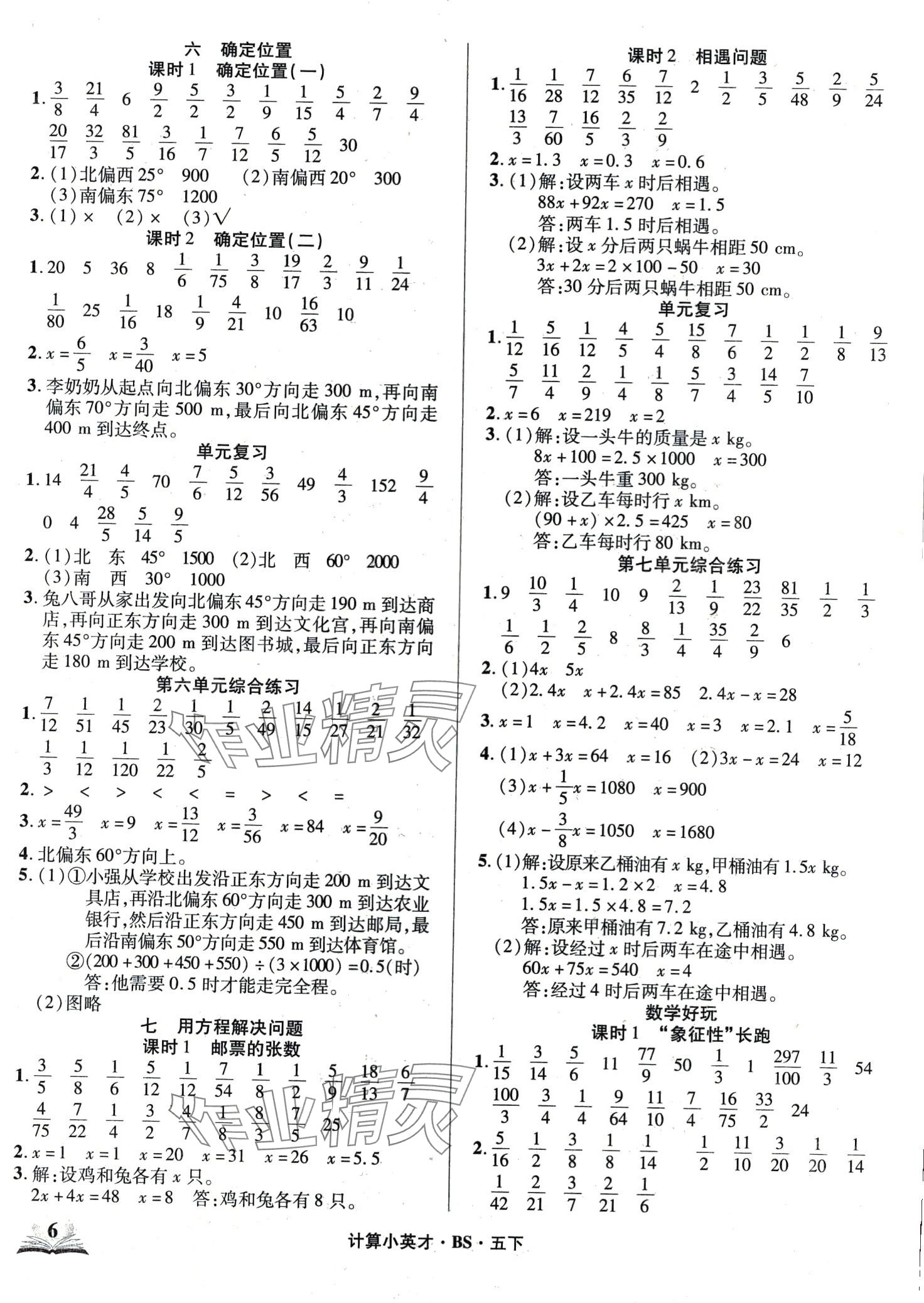 注:目前有些书本章节名称可能整理的还不是很完善,但都是按照顺序排列的,请同学们按照顺序仔细查找。练习册 2024年计算小英才五年级数学下册北师大版 答案主要是用来给同学们做完题方便对答案用的,请勿直接抄袭。