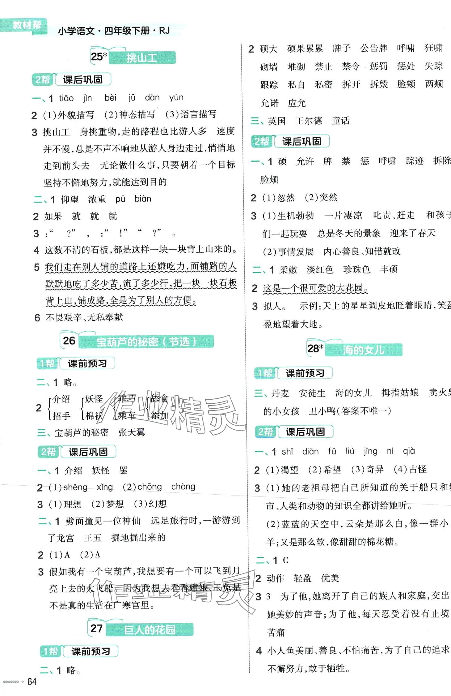 注:目前有些书本章节名称可能整理的还不是很完善,但都是按照顺序排列的,请同学们按照顺序仔细查找。练习册 2024年教材帮四年级语文下册人教版河南专版 答案主要是用来给同学们做完题方便对答案用的,请勿直接抄袭。