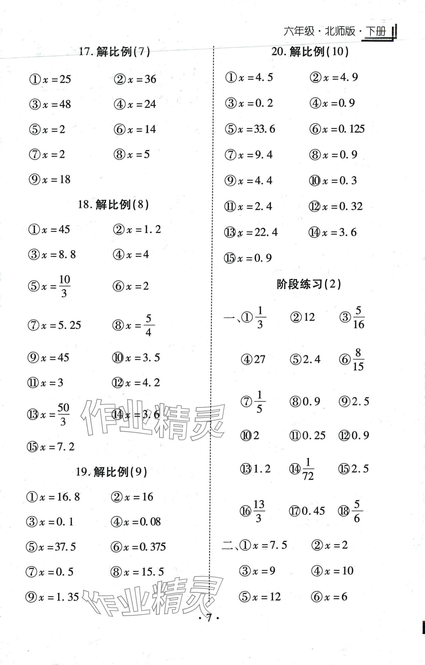2024年千里马同步竖式脱式计算六年级数学下册北师大版