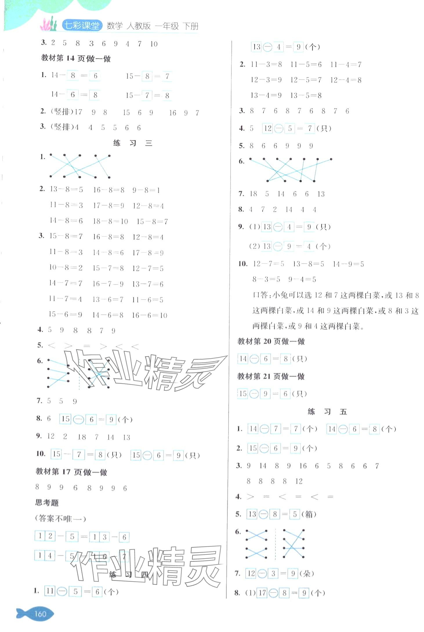 注:目前有些书本章节名称可能整理的还不是很完善,但都是按照顺序排列的,请同学们按照顺序仔细查找。练习册 2024年七彩课堂一年级数学下册人教版 答案主要是用来给同学们做完题方便对答案用的,请勿直接抄袭。
