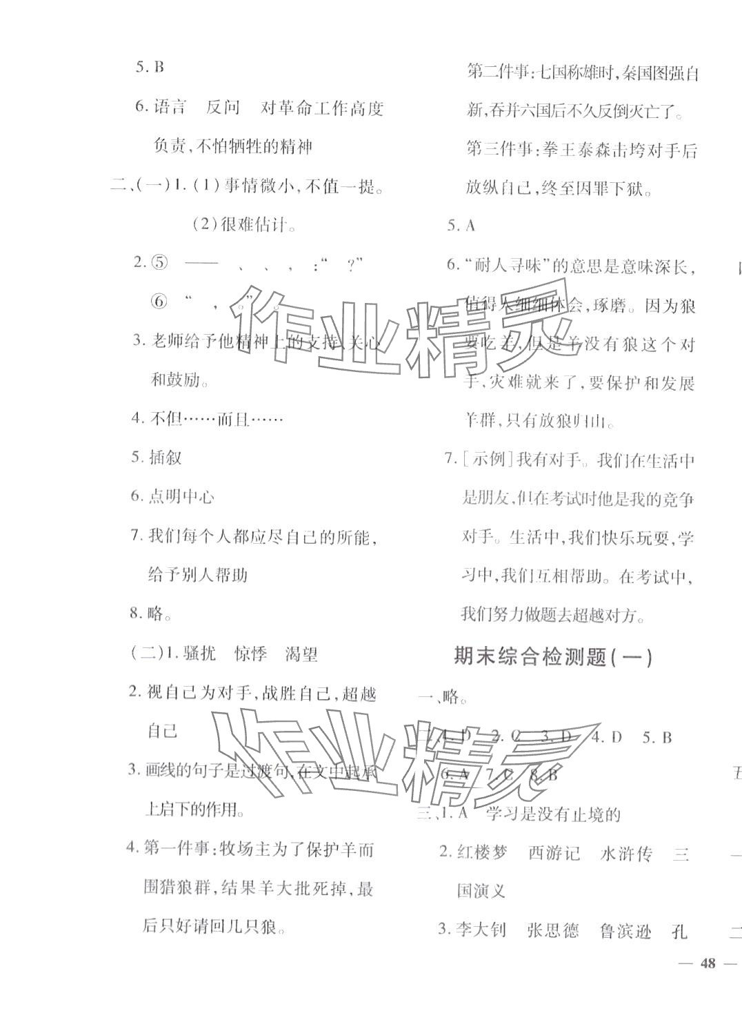 注:目前有些书本章节名称可能整理的还不是很完善,但都是按照顺序排列的,请同学们按照顺序仔细查找。练习册 2024年教育世家状元卷六年级语文下册人教版 答案主要是用来给同学们做完题方便对答案用的,请勿直接抄袭。