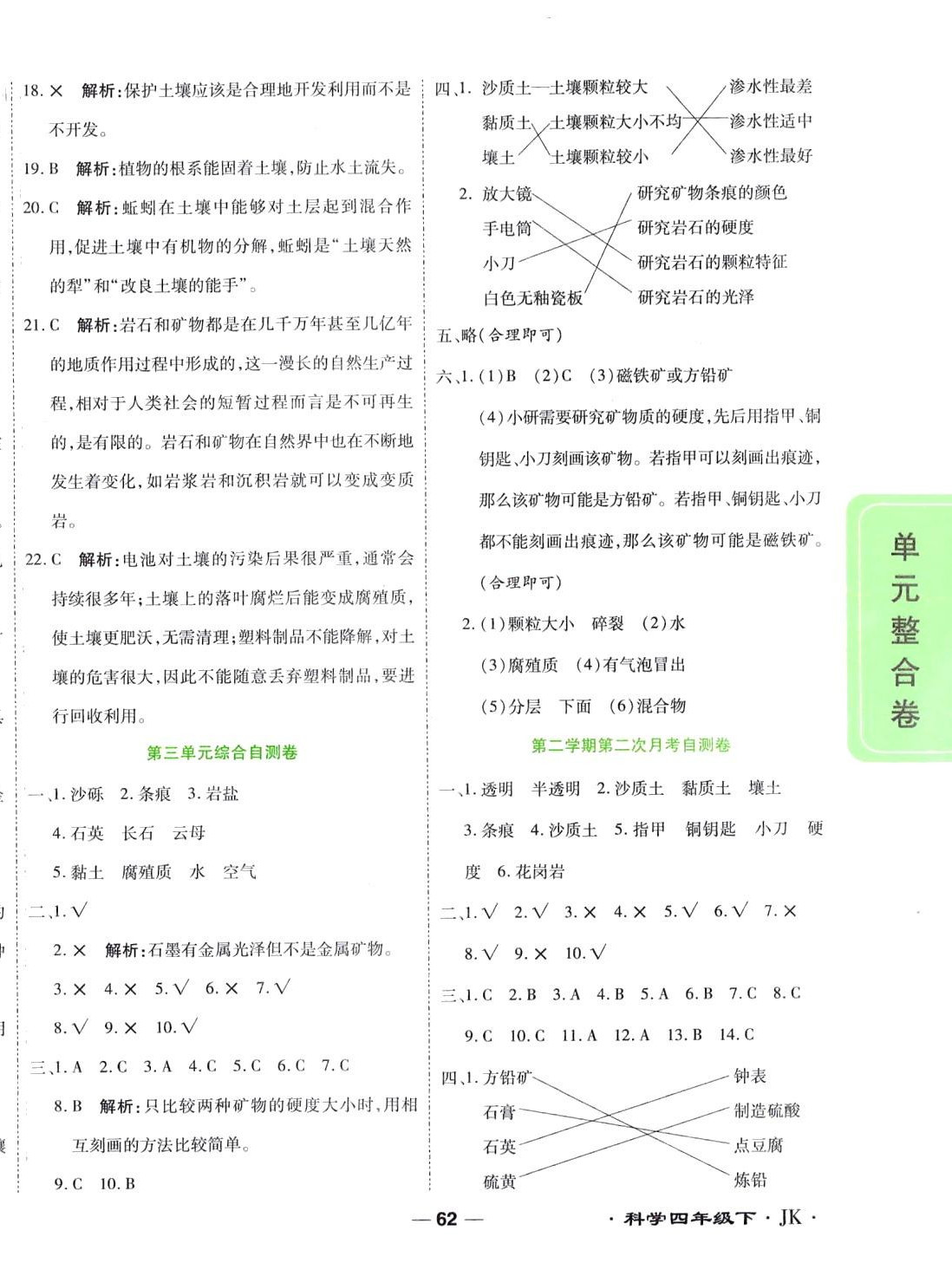 注:目前有些书本章节名称可能整理的还不是很完善,但都是按照顺序排列的,请同学们按照顺序仔细查找。练习册 2024年一线调研单元整合卷四年级科学下册教科版 答案主要是用来给同学们做完题方便对答案用的,请勿直接抄袭。