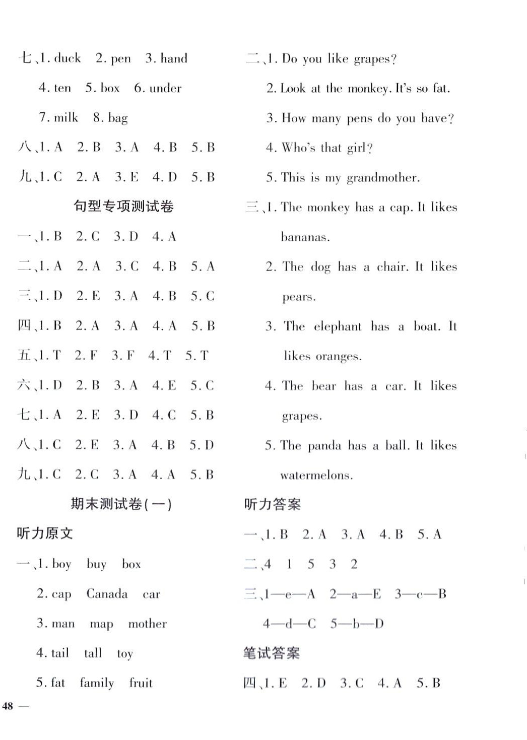 注:目前有些书本章节名称可能整理的还不是很完善,但都是按照顺序排列的,请同学们按照顺序仔细查找。练习册 2024年教育世家状元卷三年级英语下册人教版 答案主要是用来给同学们做完题方便对答案用的,请勿直接抄袭。