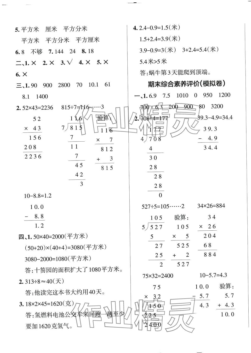 注:目前有些书本章节名称可能整理的还不是很完善,但都是按照顺序排列的,请同学们按照顺序仔细查找。练习册 2024年小学学霸单元期末标准卷三年级数学下册人教版 答案主要是用来给同学们做完题方便对答案用的,请勿直接抄袭。