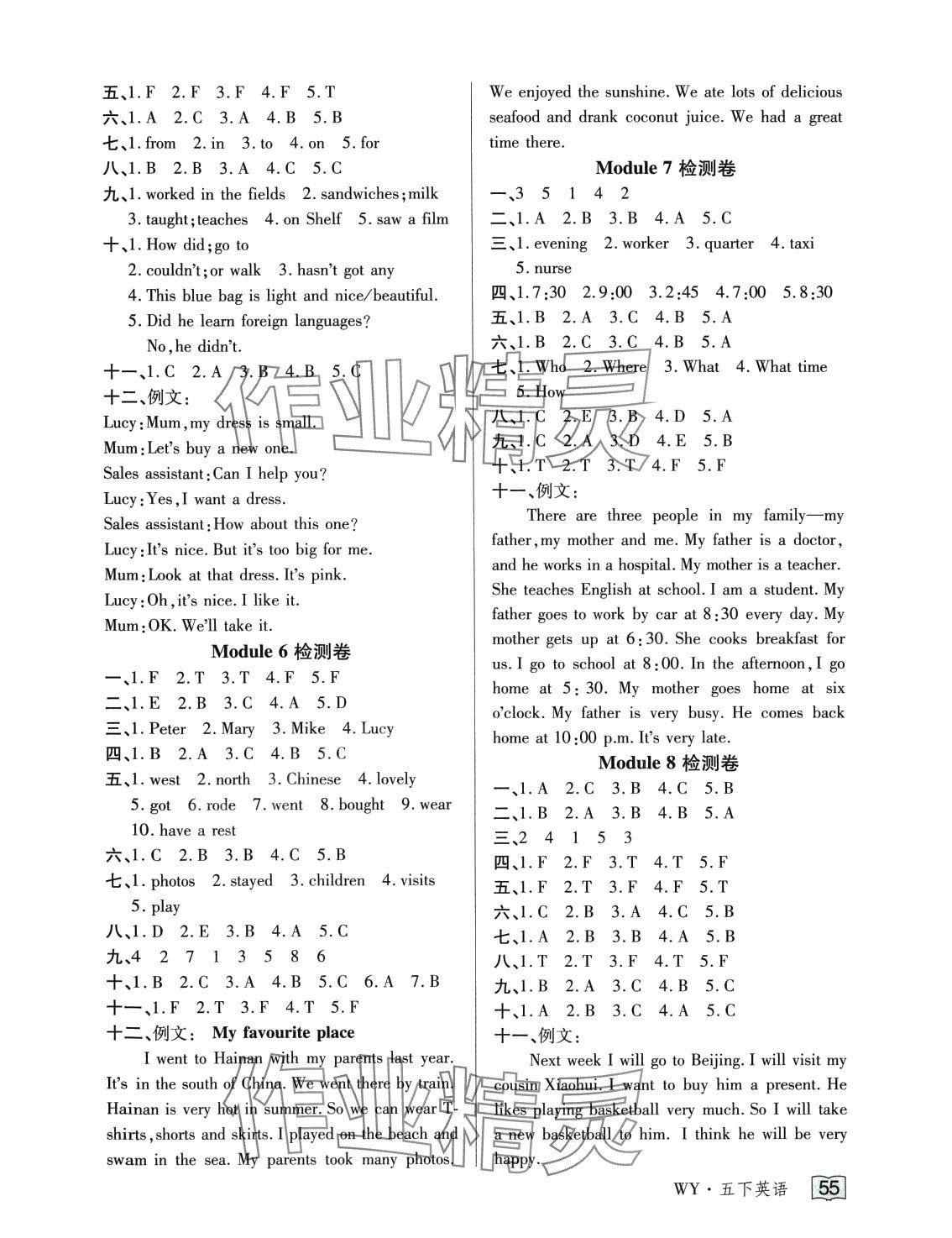 注:目前有些书本章节名称可能整理的还不是很完善,但都是按照顺序排列的,请同学们按照顺序仔细查找。练习册 2024年花儿与星星五年级英语下册外研版 答案主要是用来给同学们做完题方便对答案用的,请勿直接抄袭。