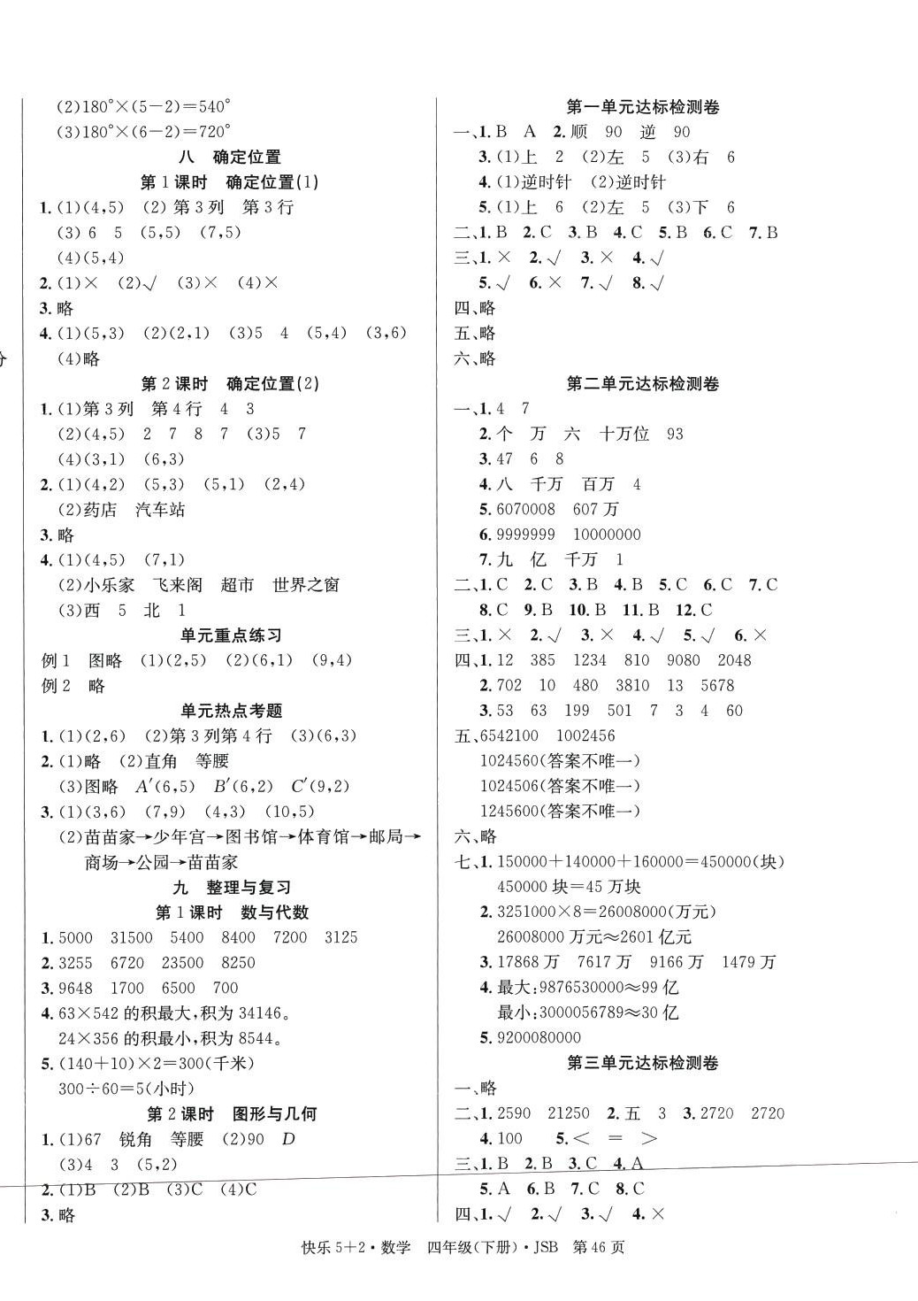 注:目前有些书本章节名称可能整理的还不是很完善,但都是按照顺序排列的,请同学们按照顺序仔细查找。练习册 2024年快乐5加2同步训练四年级数学下册苏教版 答案主要是用来给同学们做完题方便对答案用的,请勿直接抄袭。