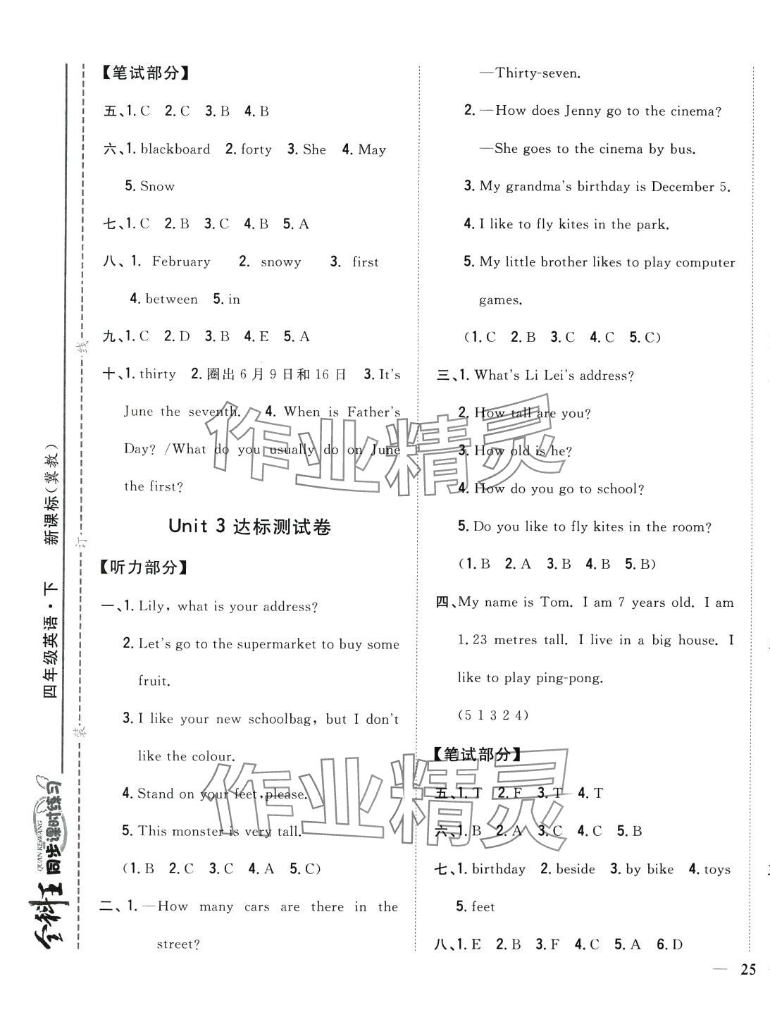 注:目前有些书本章节名称可能整理的还不是很完善,但都是按照顺序排列的,请同学们按照顺序仔细查找。练习册 2024年全科王同步课时练习四年级英语下册冀教版 答案主要是用来给同学们做完题方便对答案用的,请勿直接抄袭。