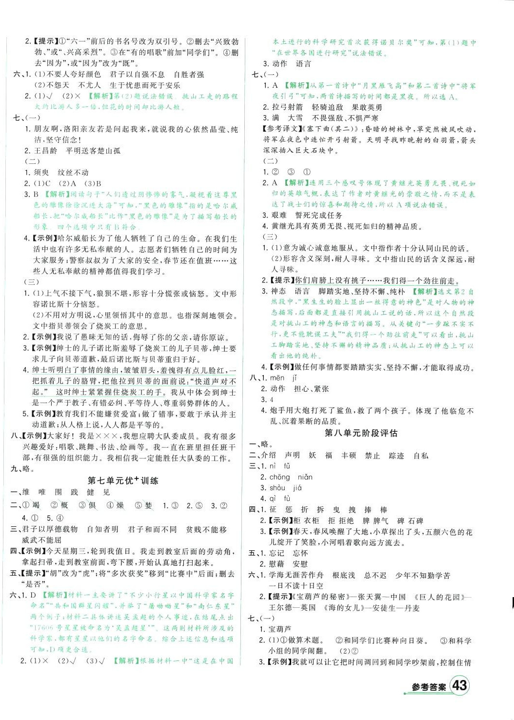 注:目前有些书本章节名称可能整理的还不是很完善,但都是按照顺序排列的,请同学们按照顺序仔细查找。练习册 2024年绿卷四年级语文下册人教版 答案主要是用来给同学们做完题方便对答案用的,请勿直接抄袭。