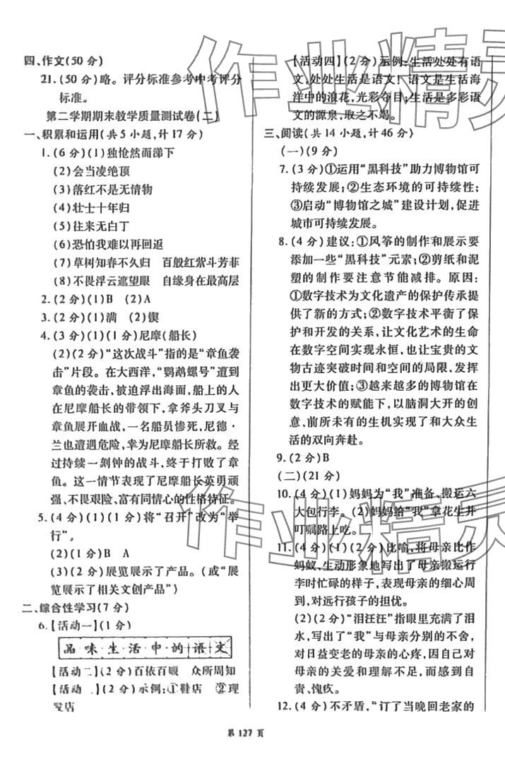 注:目前有些书本章节名称可能整理的还不是很完善,但都是按照顺序排列的,请同学们按照顺序仔细查找。练习册 2024年名师指导夺冠密卷七年级语文下册人教版陕西专版 答案主要是用来给同学们做完题方便对答案用的,请勿直接抄袭。