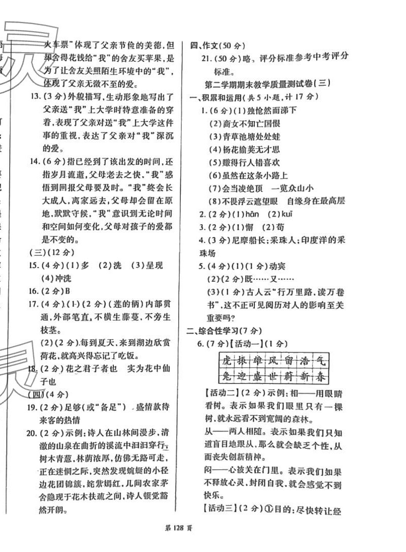 注:目前有些书本章节名称可能整理的还不是很完善,但都是按照顺序排列的,请同学们按照顺序仔细查找。练习册 2024年名师指导夺冠密卷七年级语文下册人教版陕西专版 答案主要是用来给同学们做完题方便对答案用的,请勿直接抄袭。