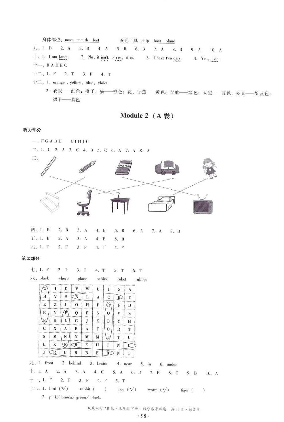 注:目前有些书本章节名称可能整理的还不是很完善,但都是按照顺序排列的,请同学们按照顺序仔细查找。练习册 2024年双基同步AB卷三年级英语下册教科版广州专版 答案主要是用来给同学们做完题方便对答案用的,请勿直接抄袭。