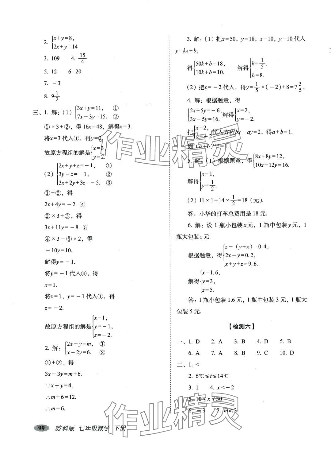 注:目前有些书本章节名称可能整理的还不是很完善,但都是按照顺序排列的,请同学们按照顺序仔细查找。练习册 2024年聚能闯关期末复习冲刺卷七年级数学下册苏科版 答案主要是用来给同学们做完题方便对答案用的,请勿直接抄袭。