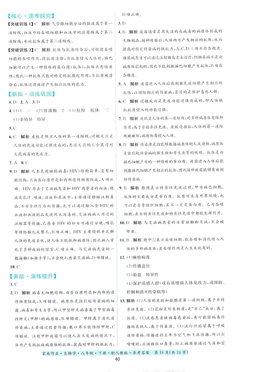 注:目前有些书本章节名称可能整理的还不是很完善,但都是按照顺序排列的,请同学们按照顺序仔细查找。练习册 2024年家庭作业八年级生物下册人教版 答案主要是用来给同学们做完题方便对答案用的,请勿直接抄袭。