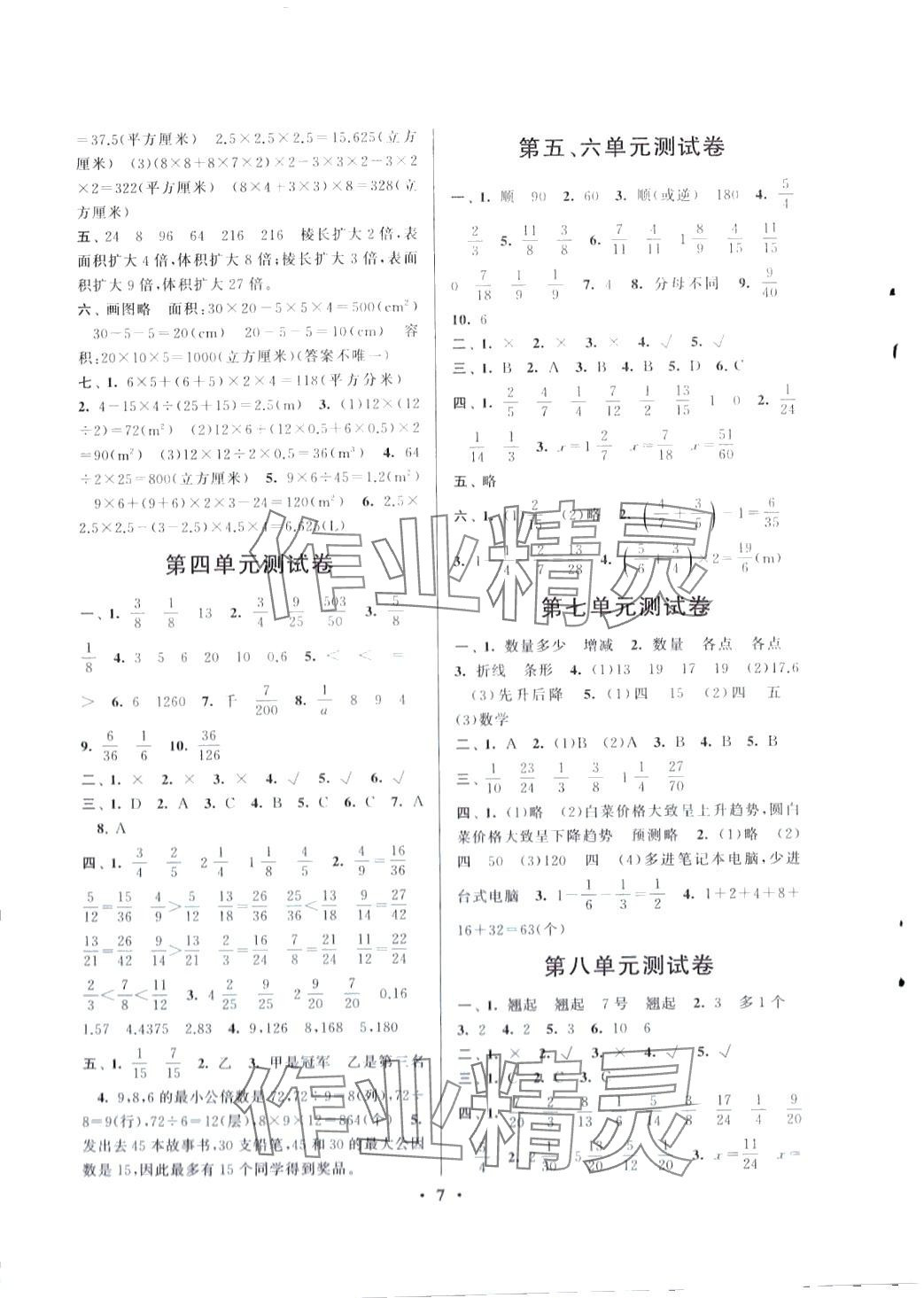 注:目前有些书本章节名称可能整理的还不是很完善,但都是按照顺序排列的,请同学们按照顺序仔细查找。练习册 2024年启东黄冈作业本五年级数学下册人教版 答案主要是用来给同学们做完题方便对答案用的,请勿直接抄袭。
