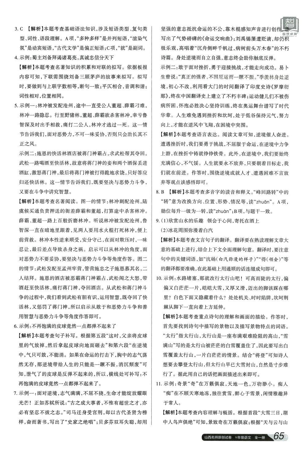 注:目前有些书本章节名称可能整理的还不是很完善,但都是按照顺序排列的,请同学们按照顺序仔细查找。练习册 2024年山西名师原创试卷九年级语文全一册人教版 答案主要是用来给同学们做完题方便对答案用的,请勿直接抄袭。