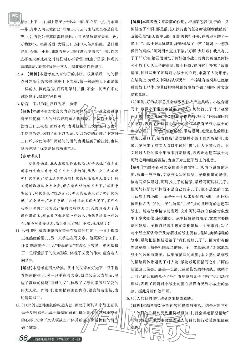 注:目前有些书本章节名称可能整理的还不是很完善,但都是按照顺序排列的,请同学们按照顺序仔细查找。练习册 2024年山西名师原创试卷九年级语文全一册人教版 答案主要是用来给同学们做完题方便对答案用的,请勿直接抄袭。
