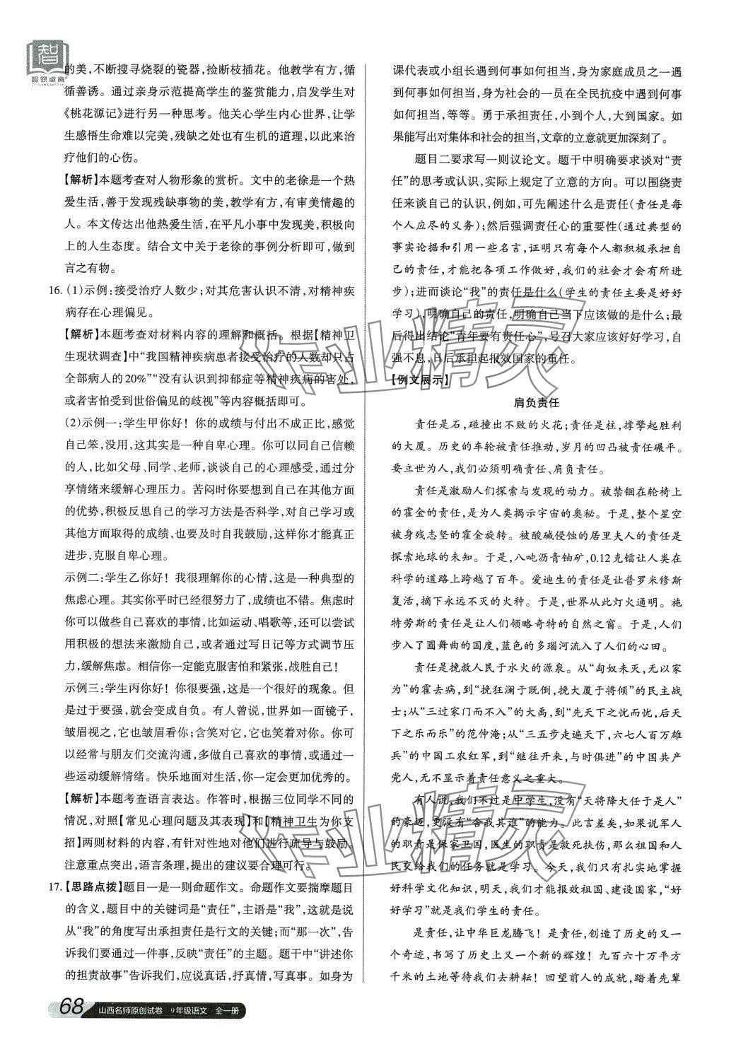 2024年山西名师原创试卷九年级语文全一册人教版